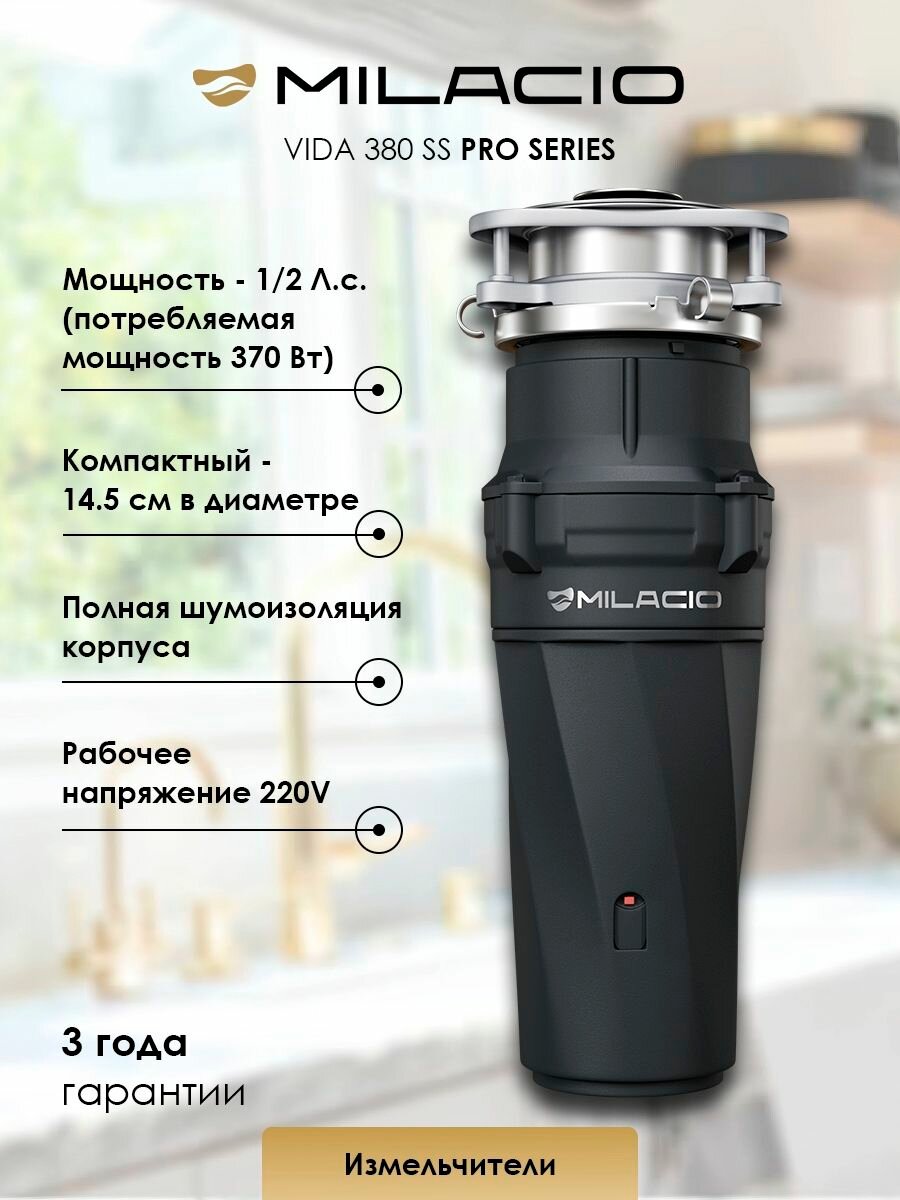 MILACIO Измельчитель для пищевых отходов VIDA 380 PRO (5550380) интересное:
