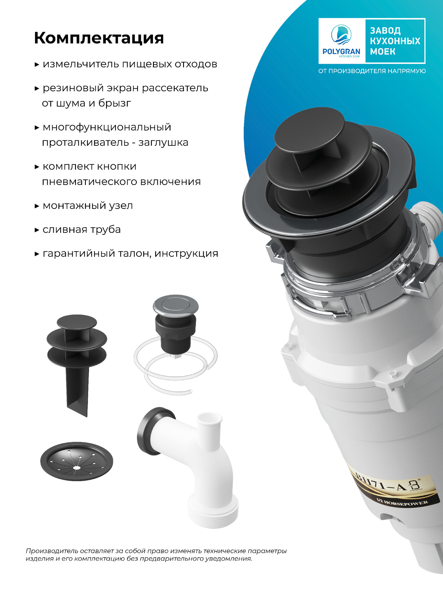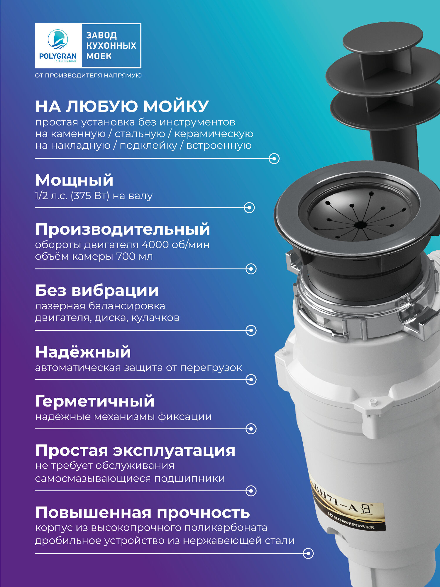 Измельчитель бытовых отходов для кухонной мойки Bone Hammer BH71-А интересное: