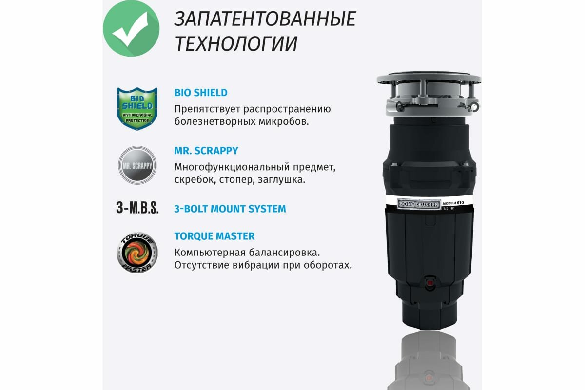 Bone Crusher Измельчитель 610 для пищевых отходов бытовой BC610-AS интересное: