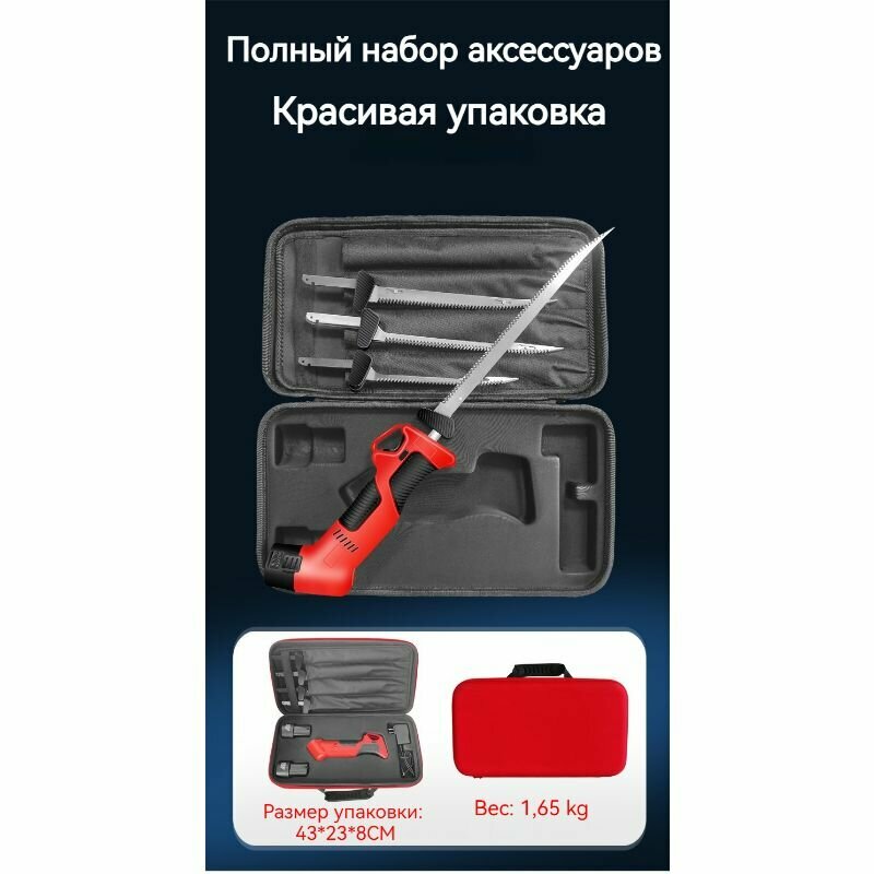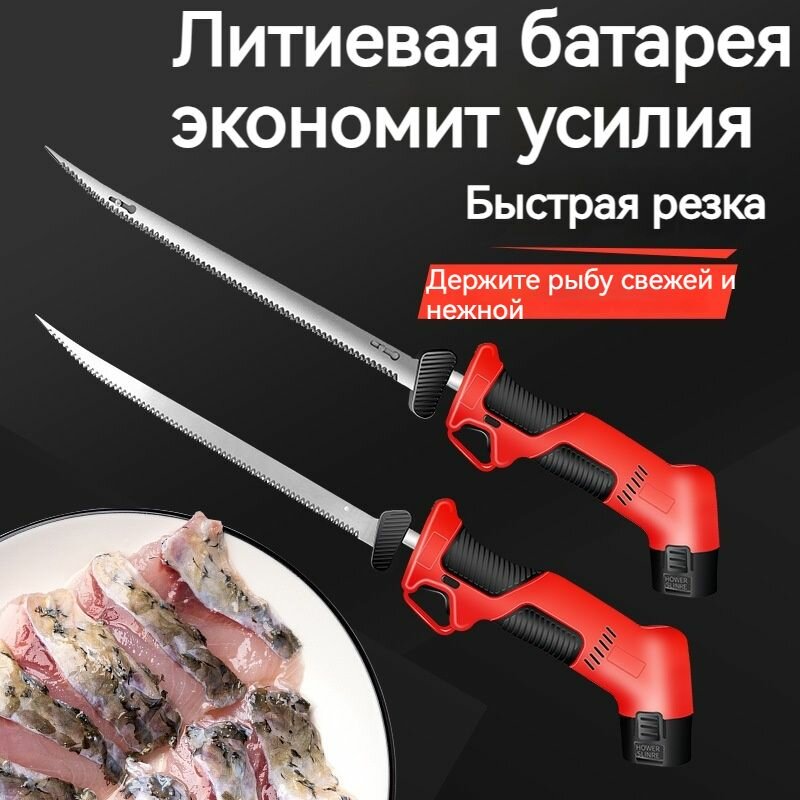 | Комплектация | батарея x 2 , Лезвие x 4,Зарядное устройство x 1,Электрический Филейный нож для разделки рыбы и мяса x 1 |