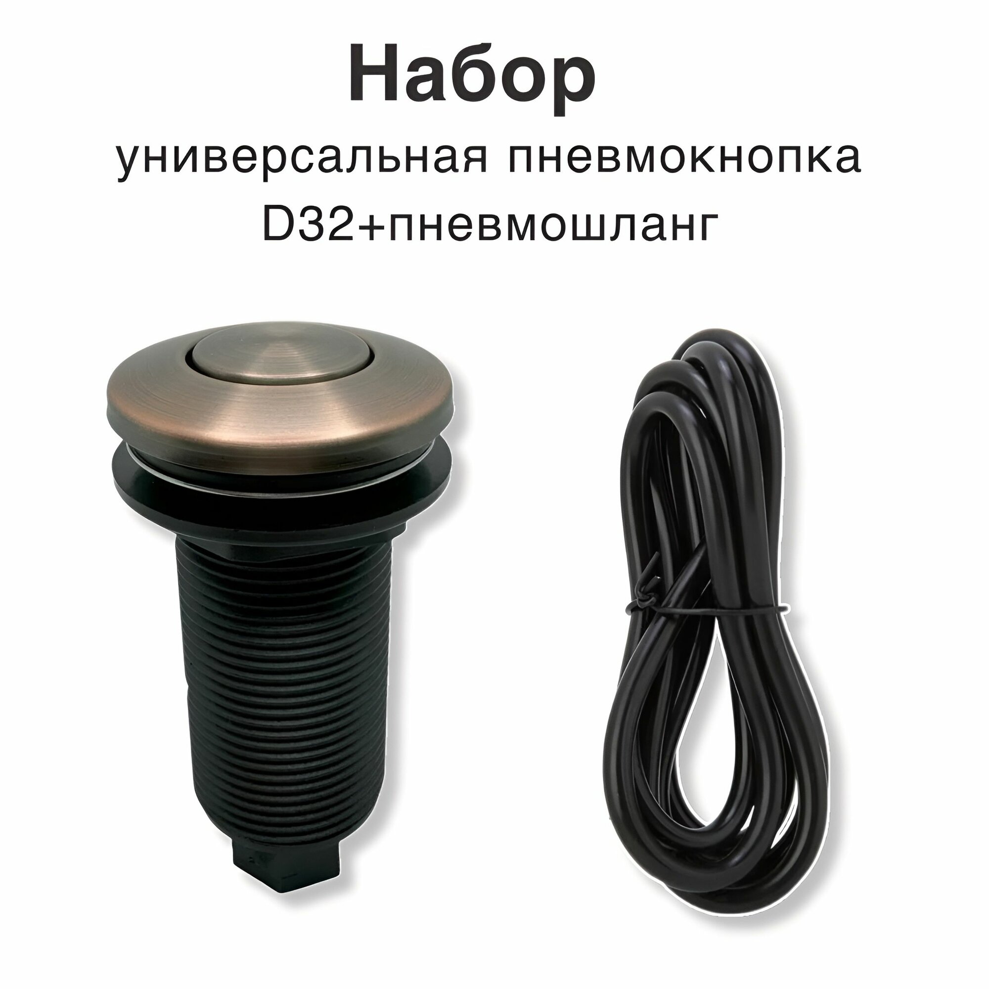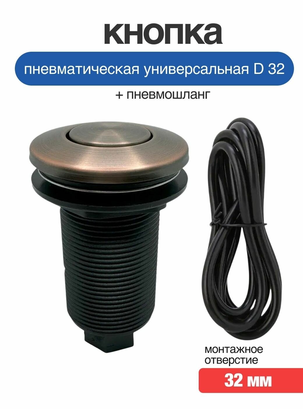 Купить Пневматическая кнопка для измельчителя пищевых отходов с пневмошлангом длинная затертая маслом бронза D 32мм
