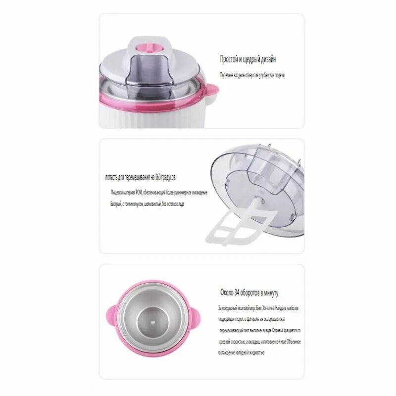Мороженица H956, полуавтоматическая, 12Вт, светло-розовая, объем чаши 1л интересное: