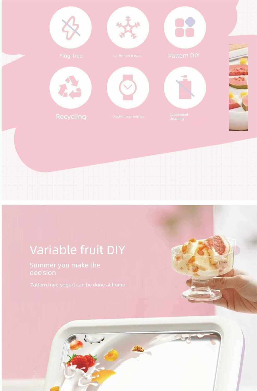 Мини-аппарат для жареного йогурта фруктово-зеленый, нержавеющая сталь 304