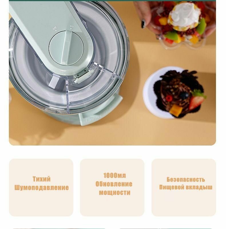 Мороженица, автоматическая, 1 литр, мощность 20Вт, пластик, светло-зеленая интересное: