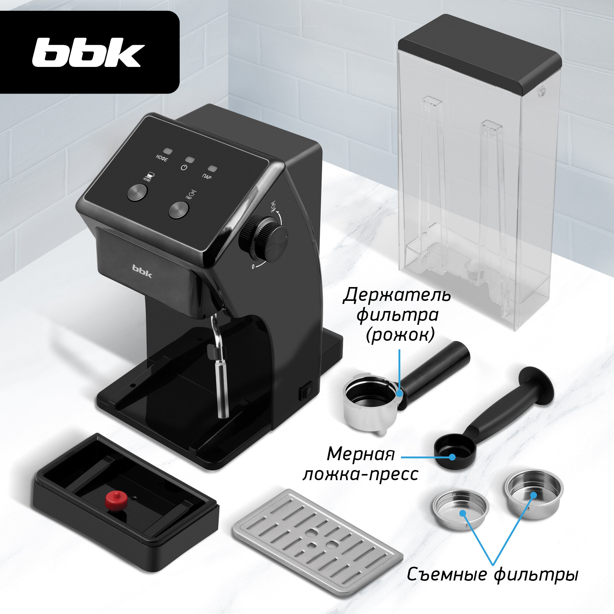 Купить Кофеварка рожковая BBK BCM1502, черный, с капучинатором, 15Бар