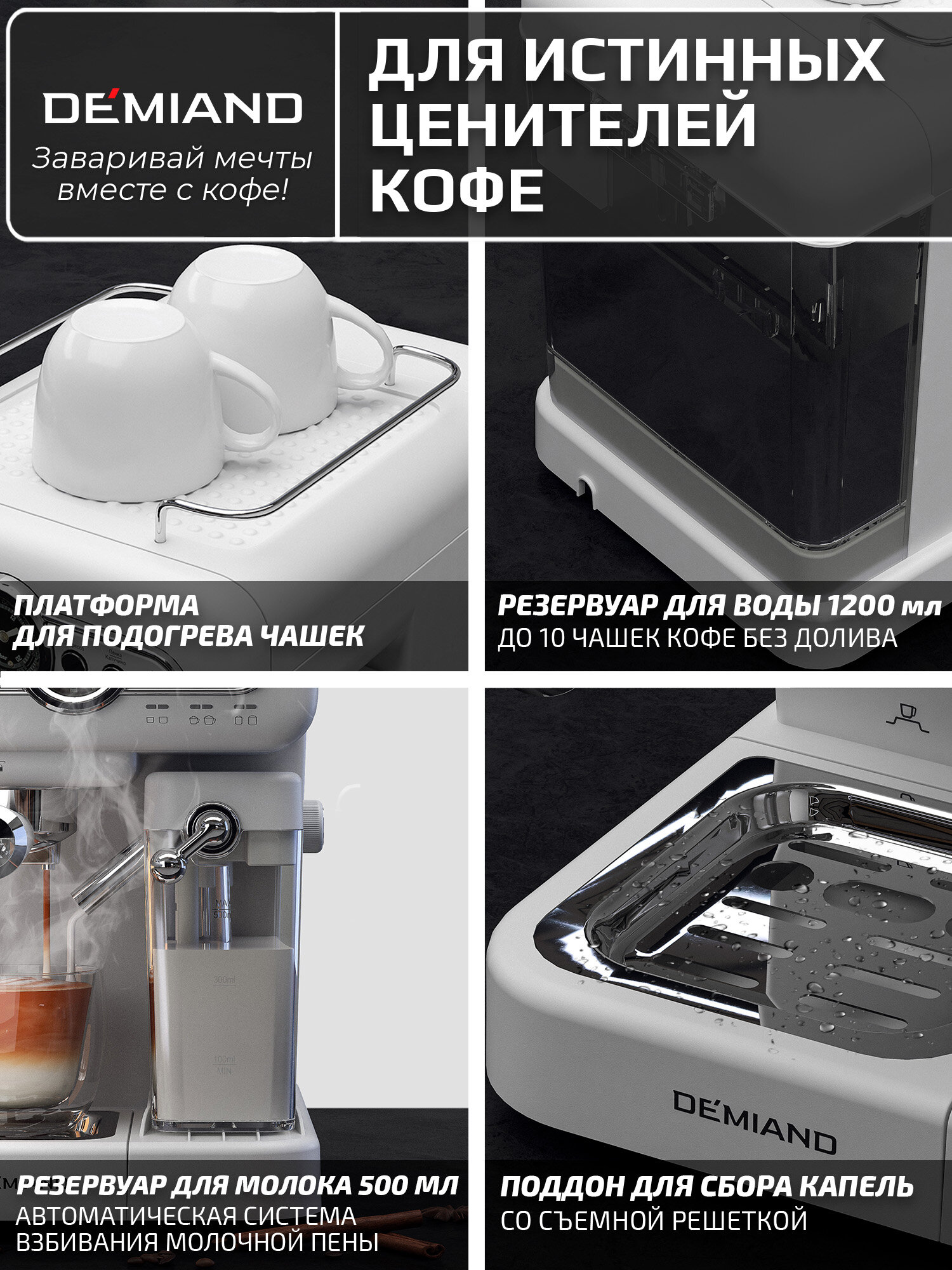 Кофеварка RETRO DEMIAND, рожковая, 1350Вт, давление 20бар, 7 программ, белый интересное:
