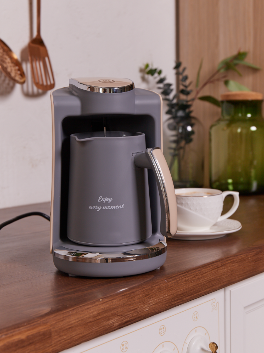 Купить Кофеварка турка для кофе электрическая с автоматическим отключением, 250 мл, серый с бежевым