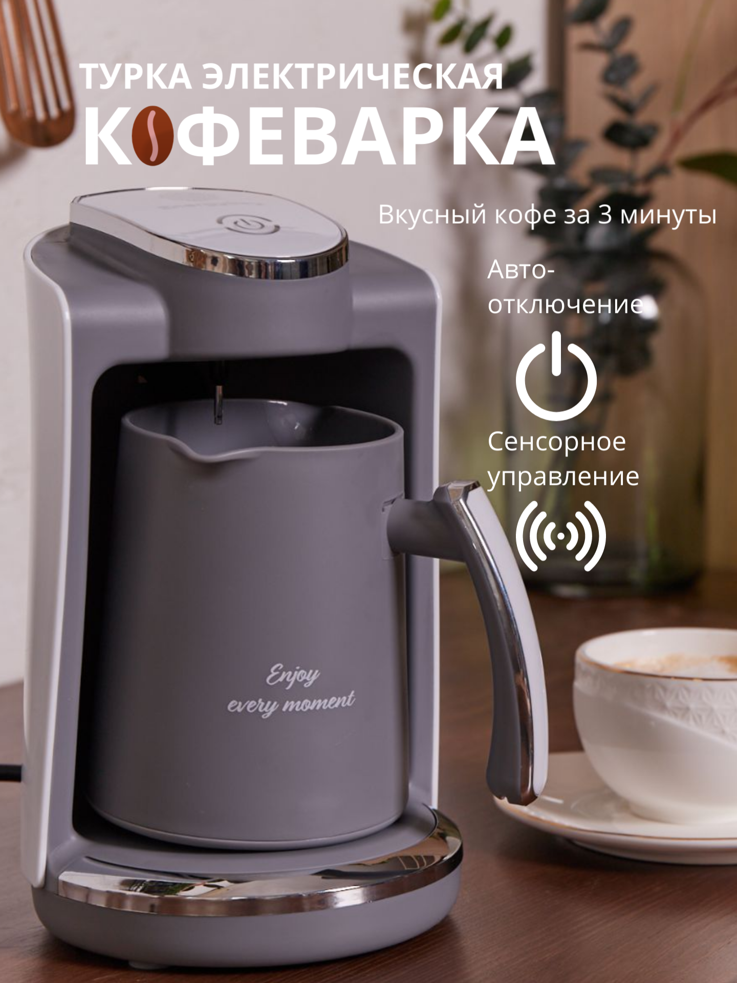 Кофеварка турка для кофе электрическая с автоматическим отключением, 250 мл, серый с бежевым