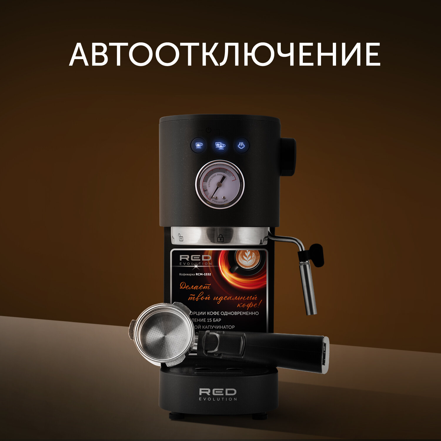 Кофеварка рожкового типа RED evolution RCM-1532 (кофе - молотый, 1300 Вт, 1.2 л) , черный интересное: