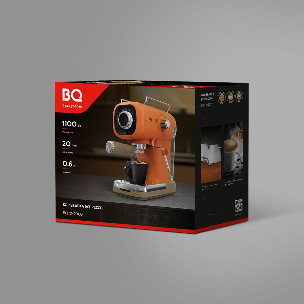 Кофеварка рожковая с капучинатором BQ CM2003 Оранжевая с подогревом чашек / 1100 Вт / 20 бар / 0.6л интересное: