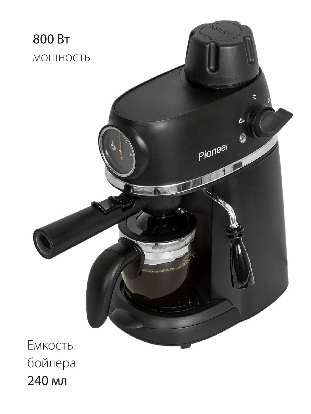 Кофемашина рожковая Pioneer CM105P с капучинатором и фильтром, индикатор температуры, защита от перегрева, 800 Вт интересное:
