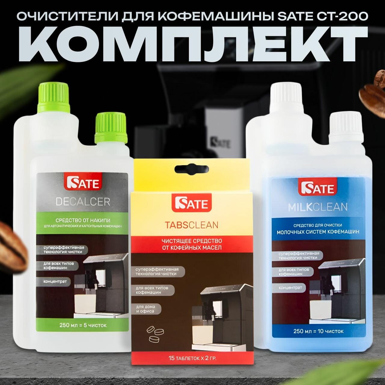 Комплект очистителей для кофемашины SATE CT-200 интересное: