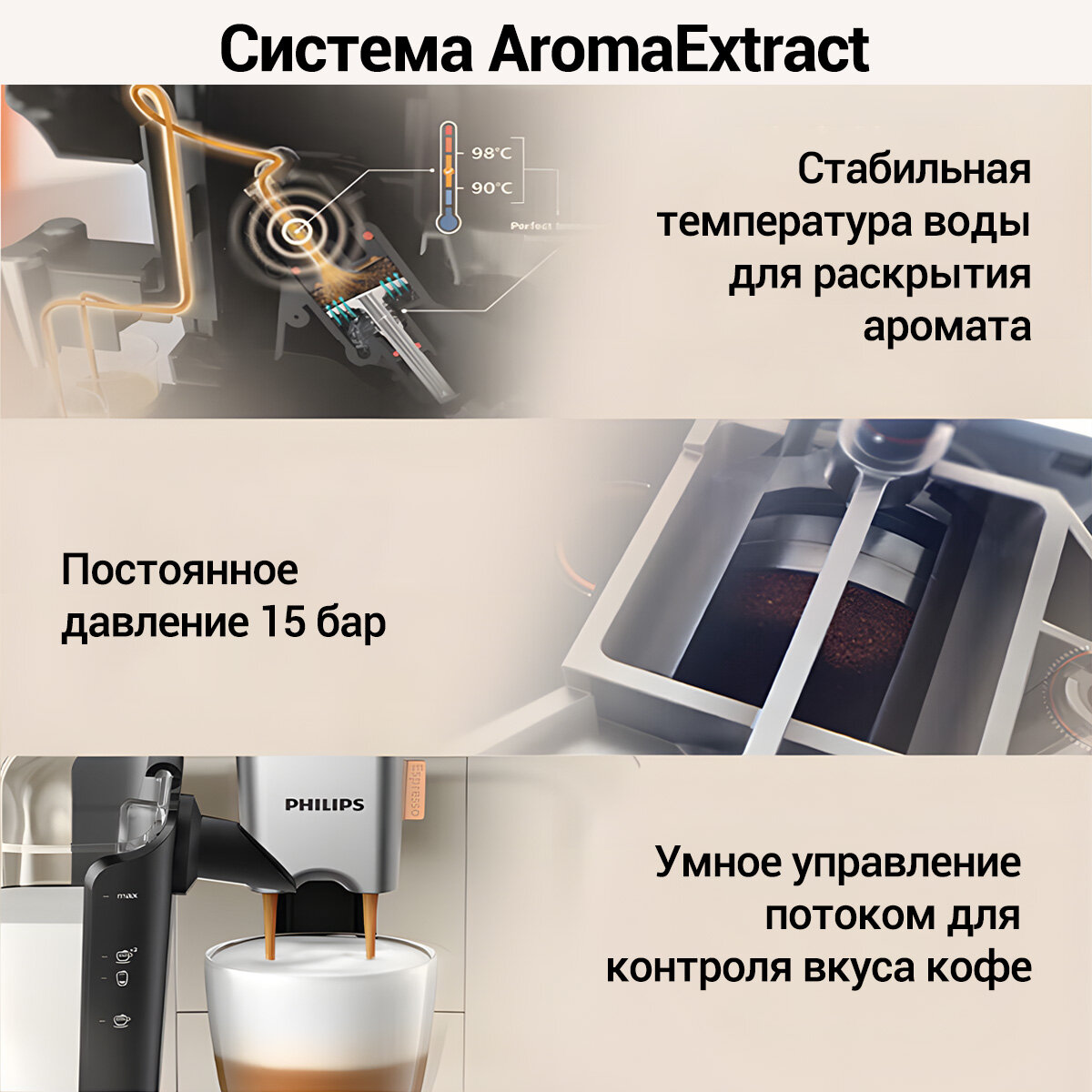 Автоматическая кофемашина Philips Серия 3300 EP3341/62 CN , AromaExtract,(Режим приготовления кофе со льдом) EP3343 интересное: