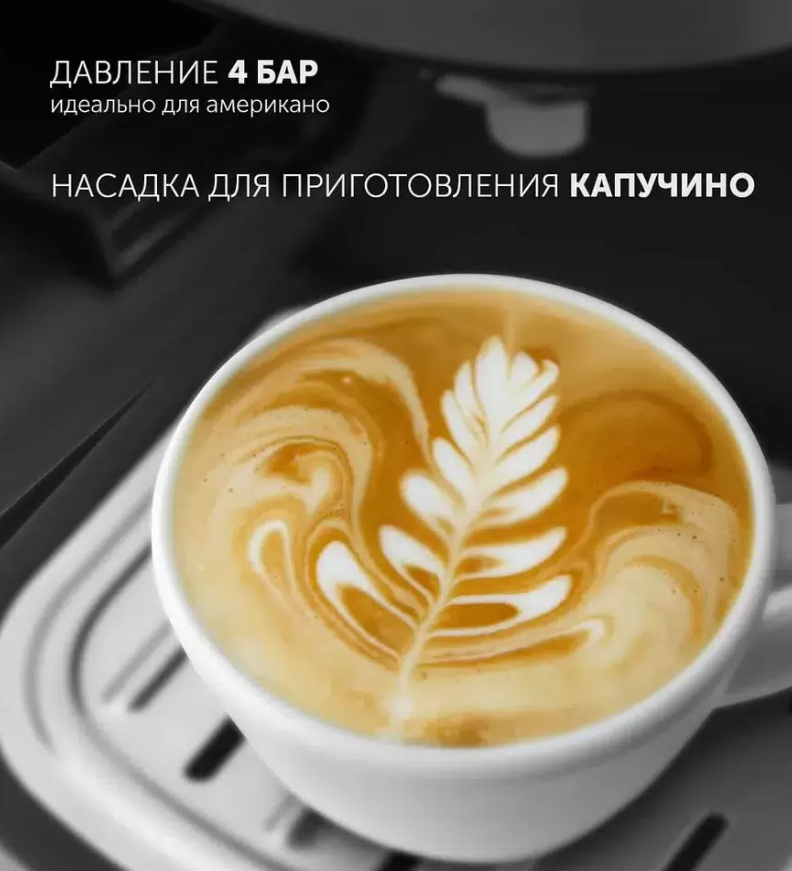 Кофеварка Polaris PCM-4017, рожковая, 800 Вт, серебристый/черный интересное: