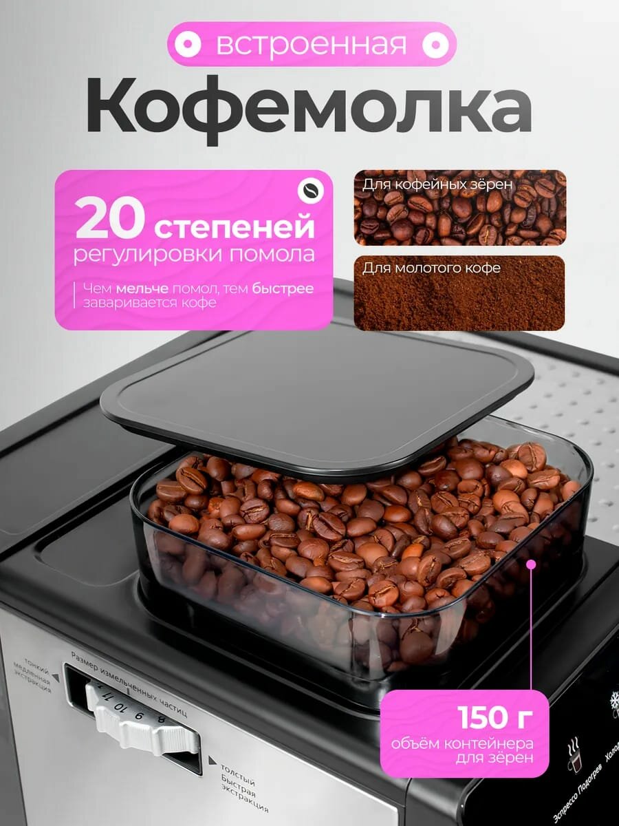 Кофемашина рожковая зерновая с капучинатором c сенсорным управлением OULEMEI интересное: