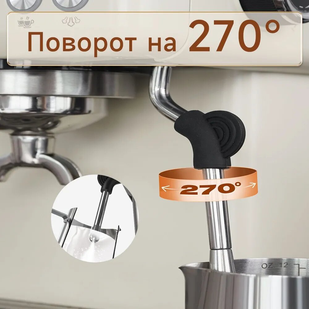 Кофемашина зерновая HiBREW рожковая с капучинатором автоматическая, серебристый, РСТ интересное: