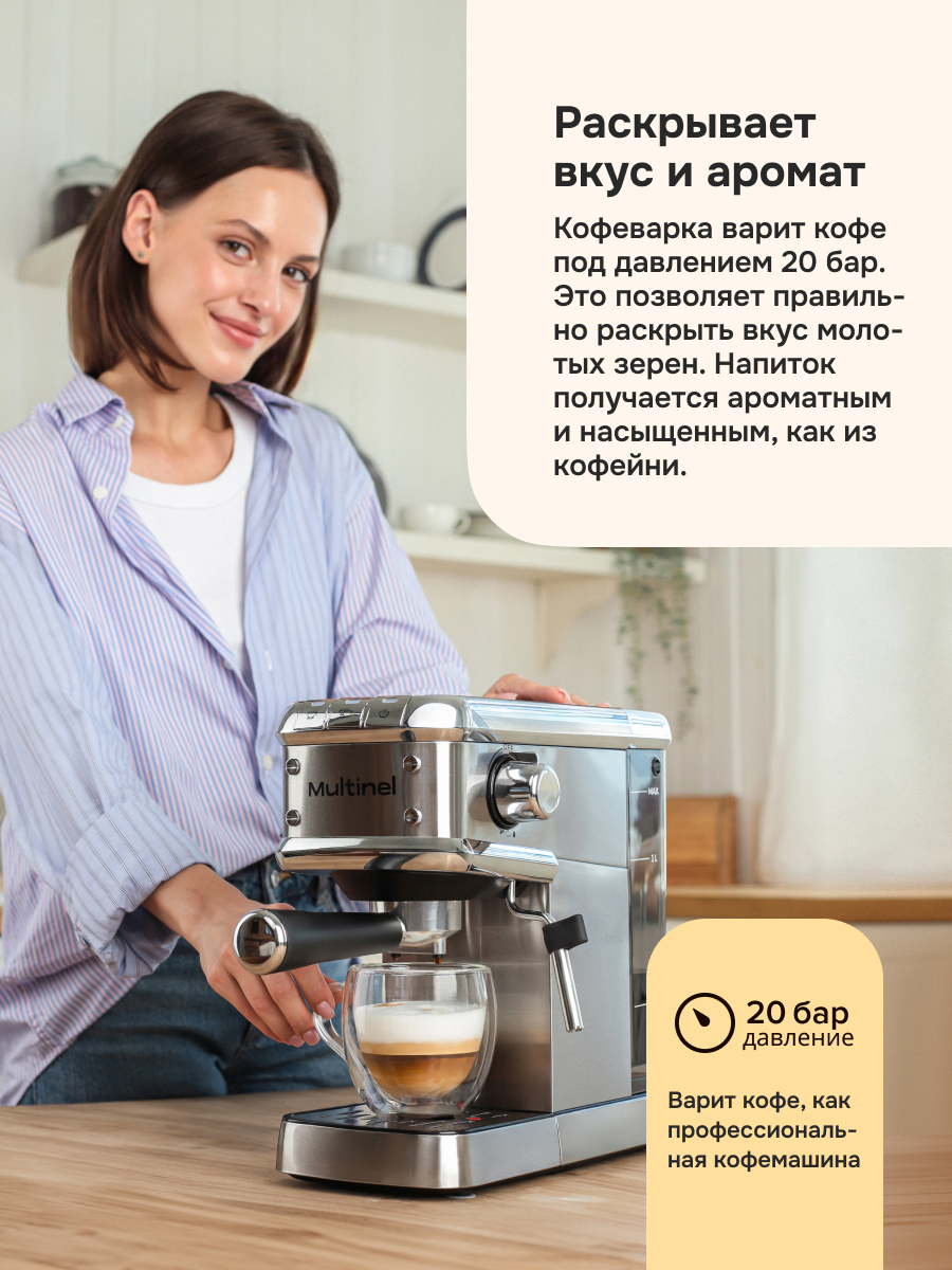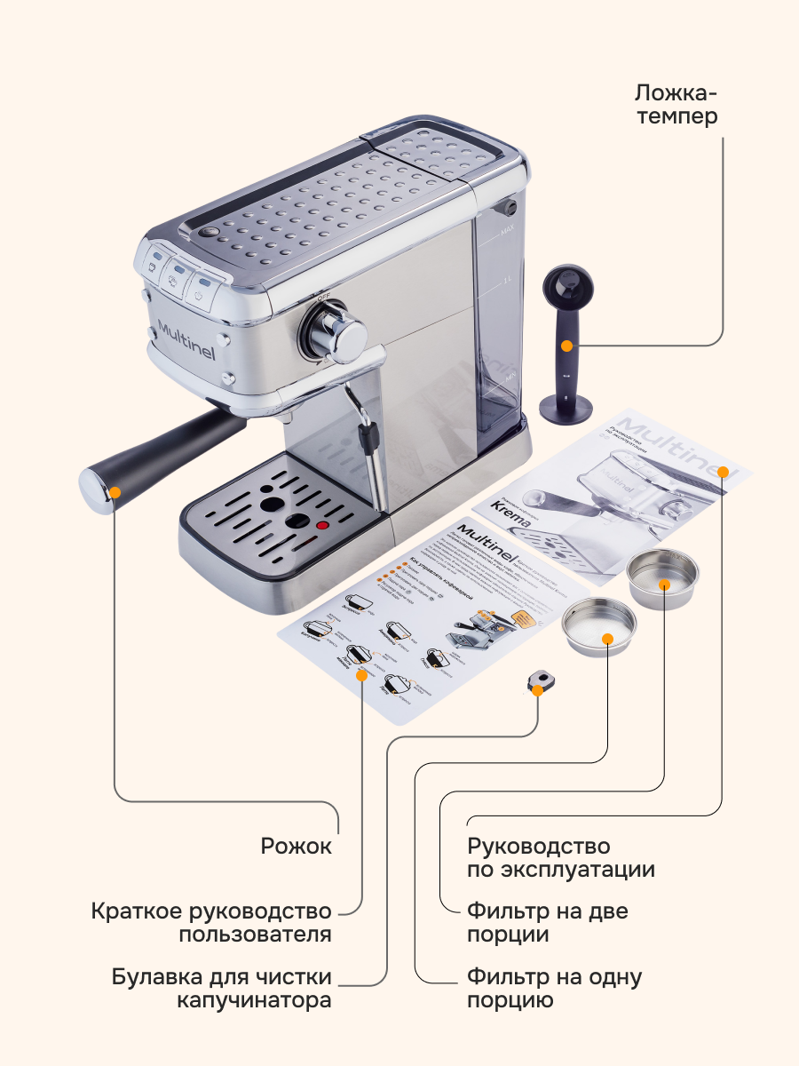 Рожковая кофеварка с капучинатором Multinel Krema 1.3 л / 20 бар интересное: