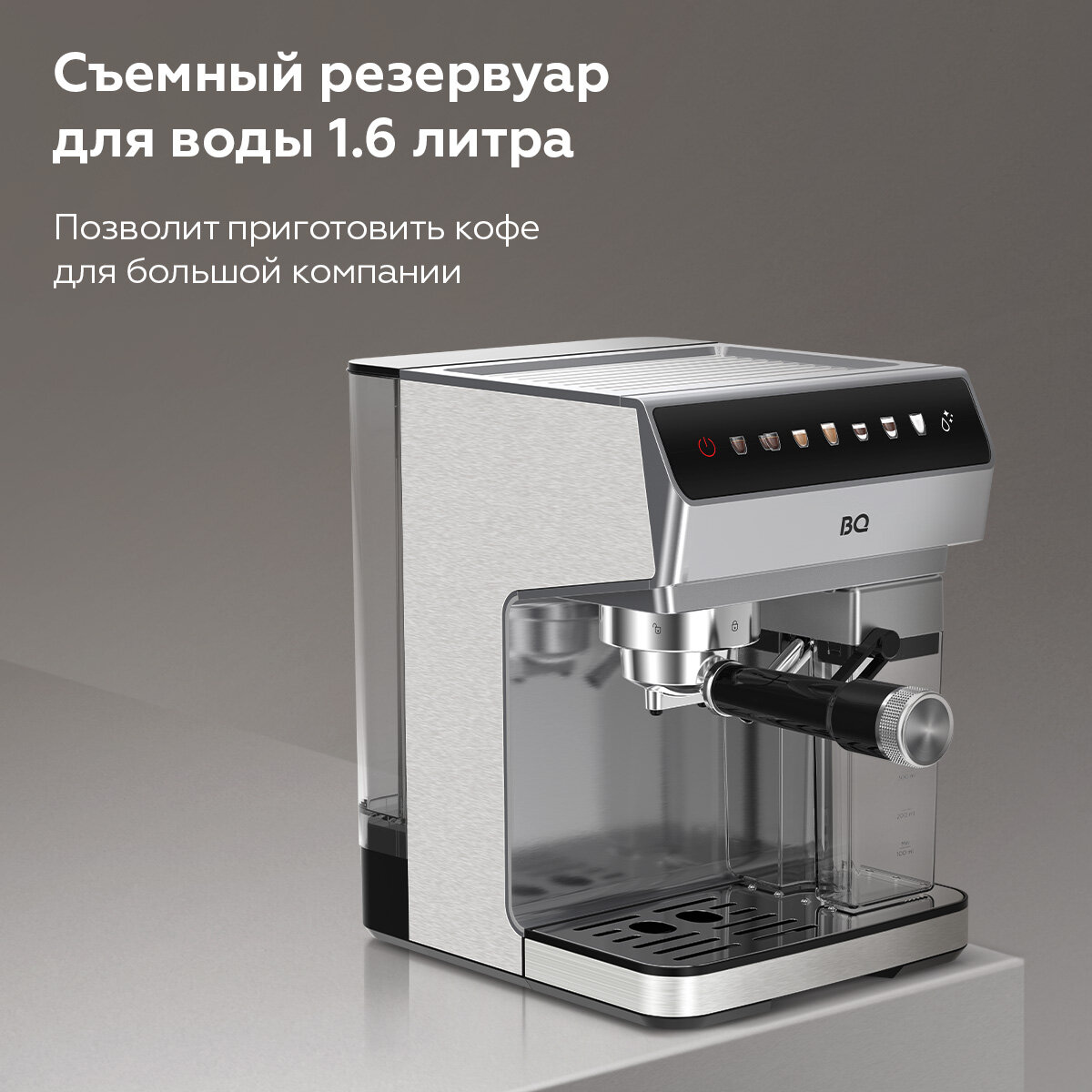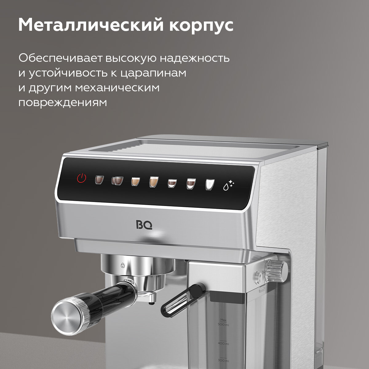 Кофеварка рожковая с капучинатором BQ CM7004 Серебристая / Мощность 1450 Вт / Объем 1.6 л / 20 бар интересное: