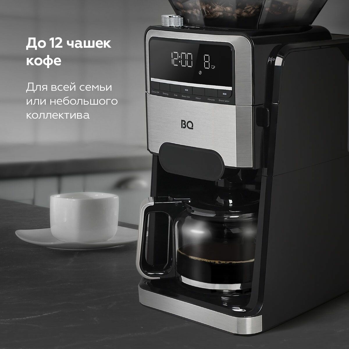 Капельная кофеварка со встроенной кофемолкой BQ CM3002 Черно-серебристая интересное: