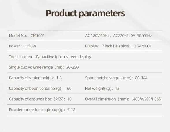 | Настройки | жесткость воды / количество пены / крепость кофе / объем порции горячей воды / температура кофе |