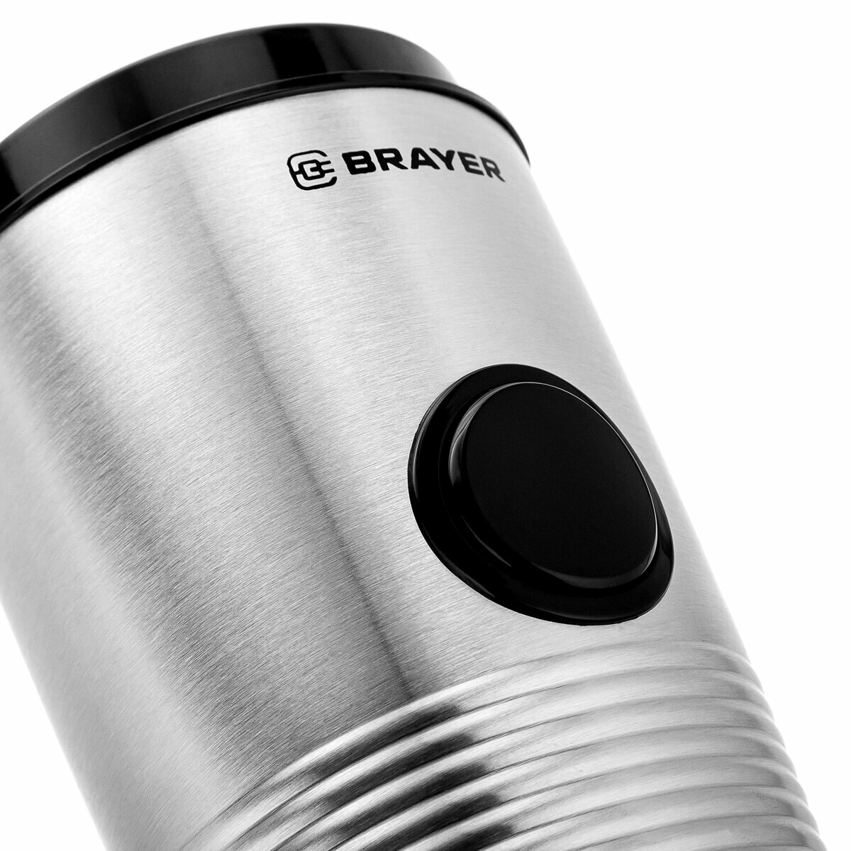 Кофемолка электрическая BRAYER BR1186, 150 Вт, емкость 60 г, цвет черный/серебристый