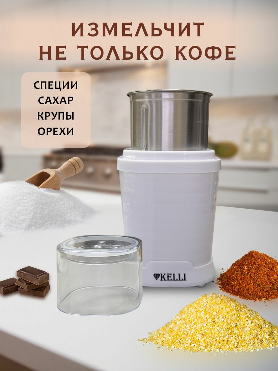 Кофемолка техно-вилка KELLI электрическая, со съемной чашей, 500 Вт, от сети, белый интересное: