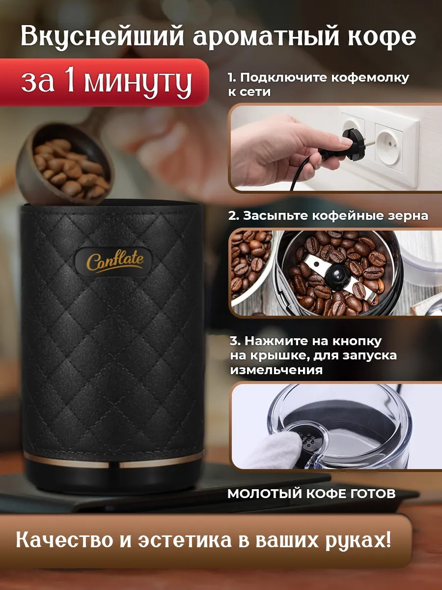 Кофемолка электрическая Conflate, мощная для кофе в зернах, измельчитель интересное: