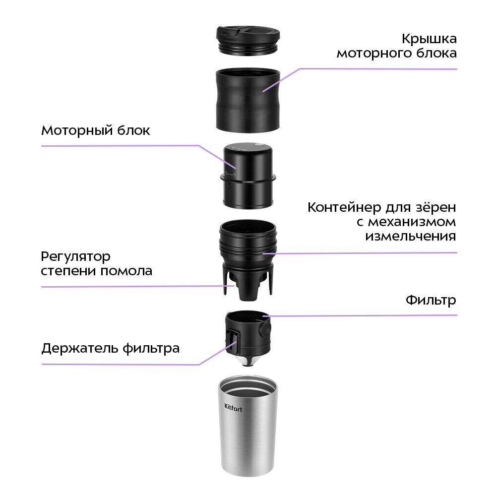 Портативная кофемолка "3 в 1" Kitfort KT-7534 интересное: