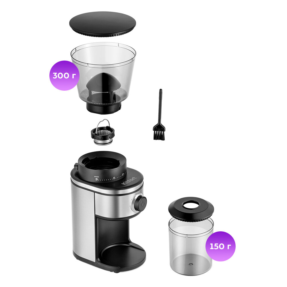 | Конструкция | емкость для молотого кофе (на 150 г) |