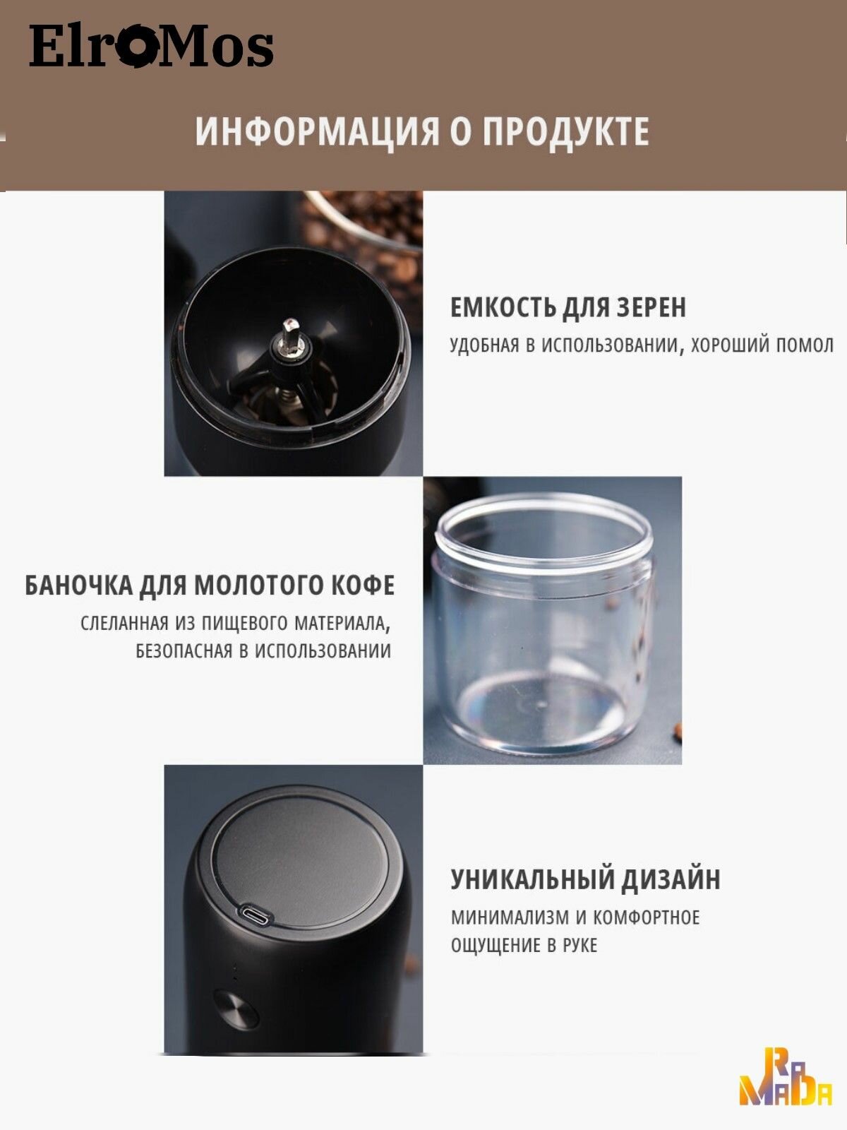 Кофемолка электрическая беспроводная , черная интересное: