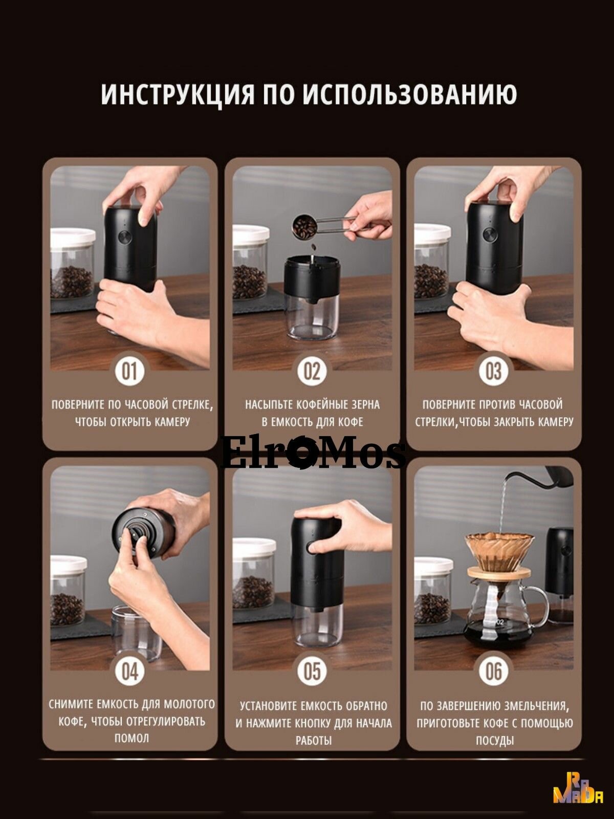 | Комплектация | Электрическая кофемолка -1 шт., USB TypeC - 1 шт., Кисточка - 1 шт., Инструкция - 1 шт. |