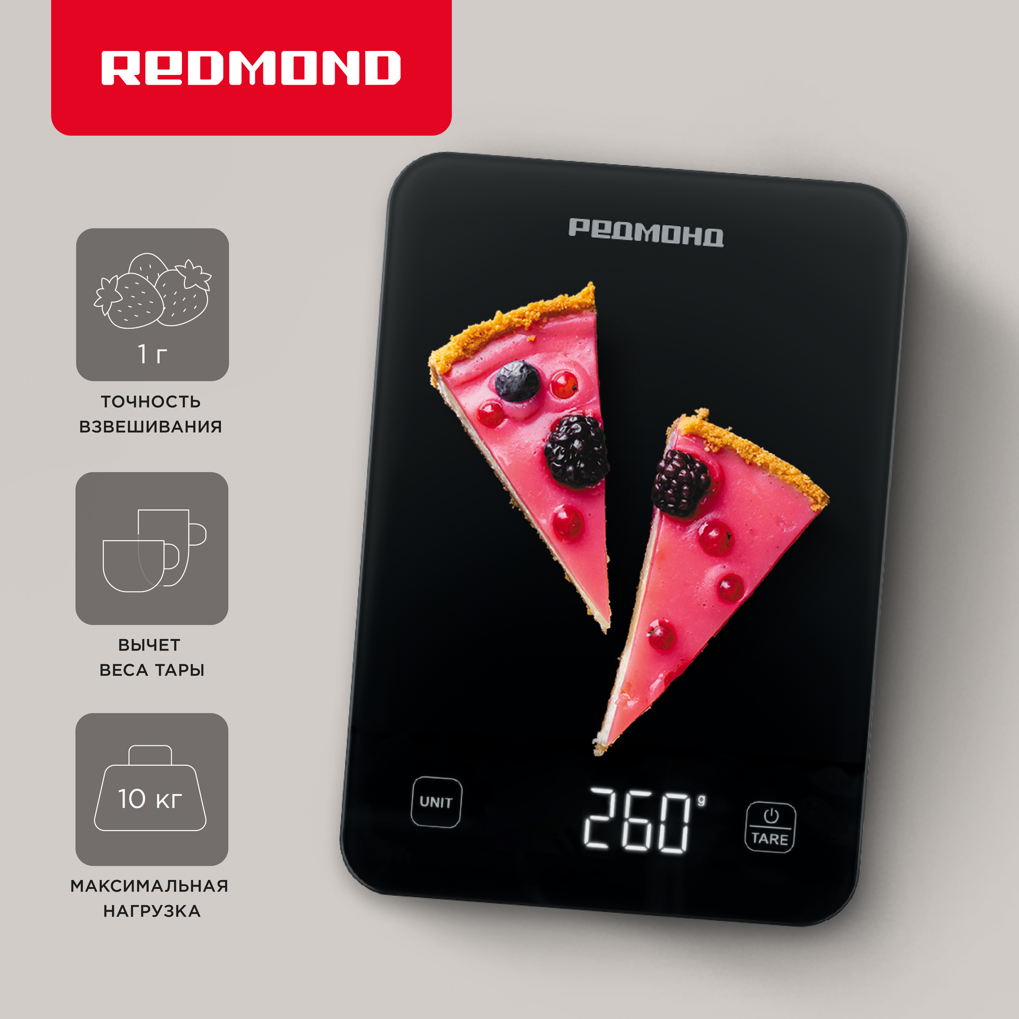 Весы кухонные РЕДМОНД SK1800, черный, точность взвешивания 1 г, нагрузка до 10 кг интересное: