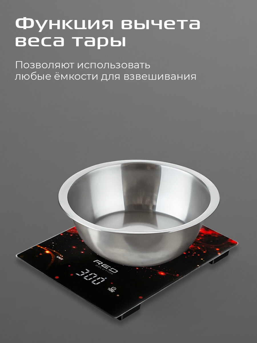Весы кухонные RED SOLUTION "S729", точность 1г, сенсорное управление, закаленное стекло, черно-красные интересное: