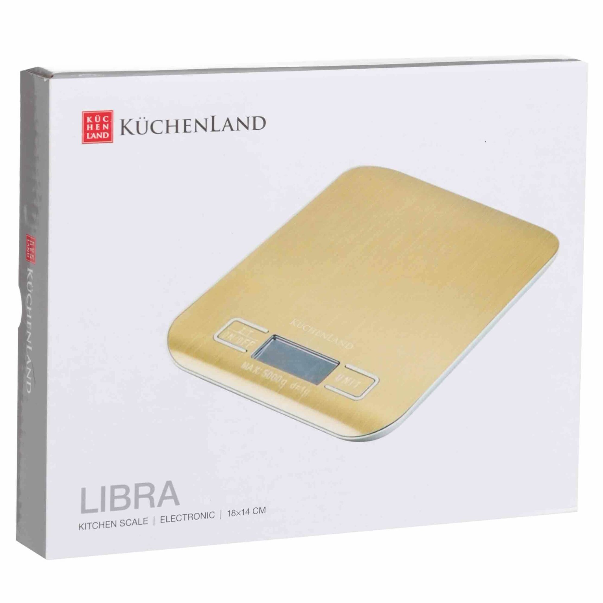 Купить Весы кухонные, 18х14 см, электронные, сталь/пластик, золотистые, Libra