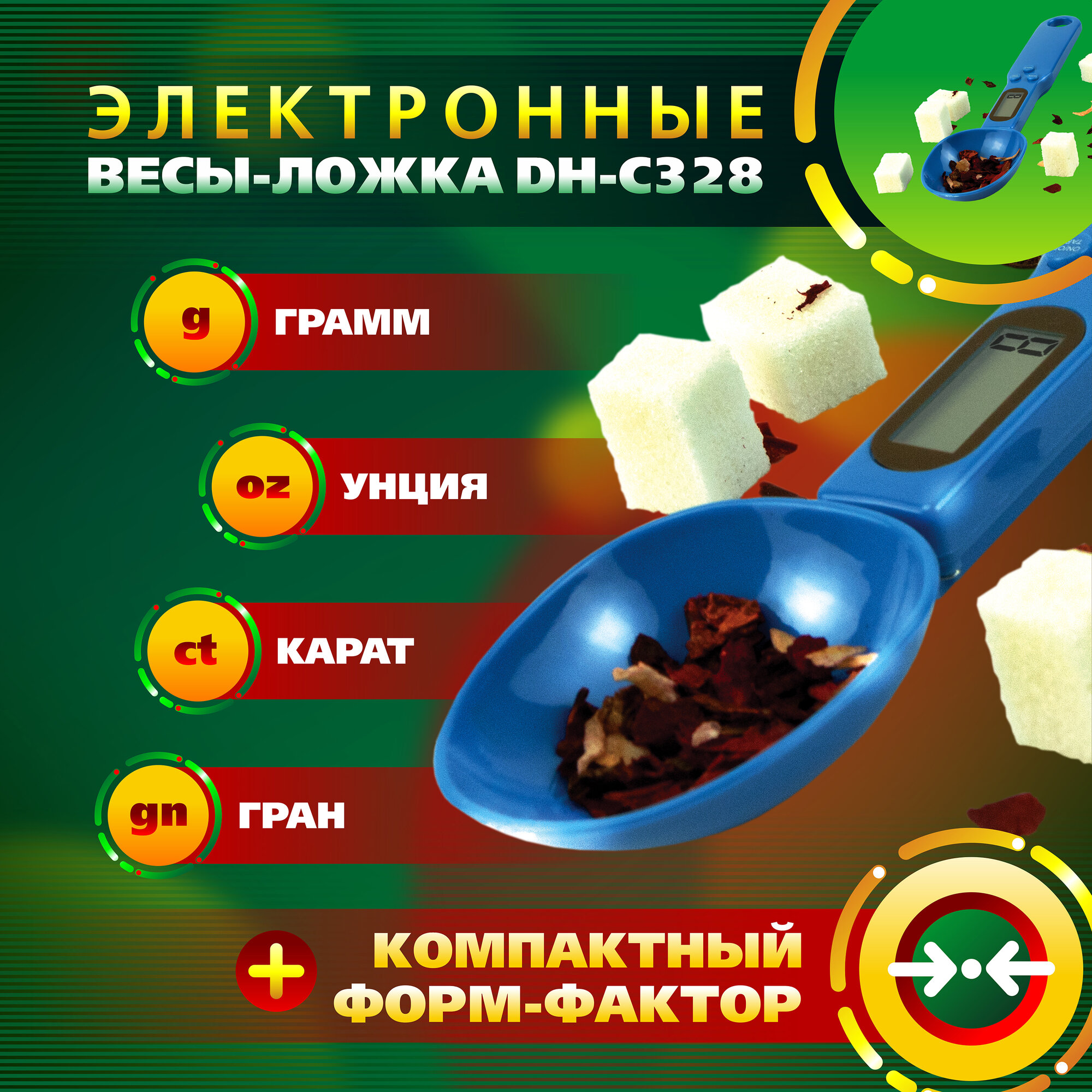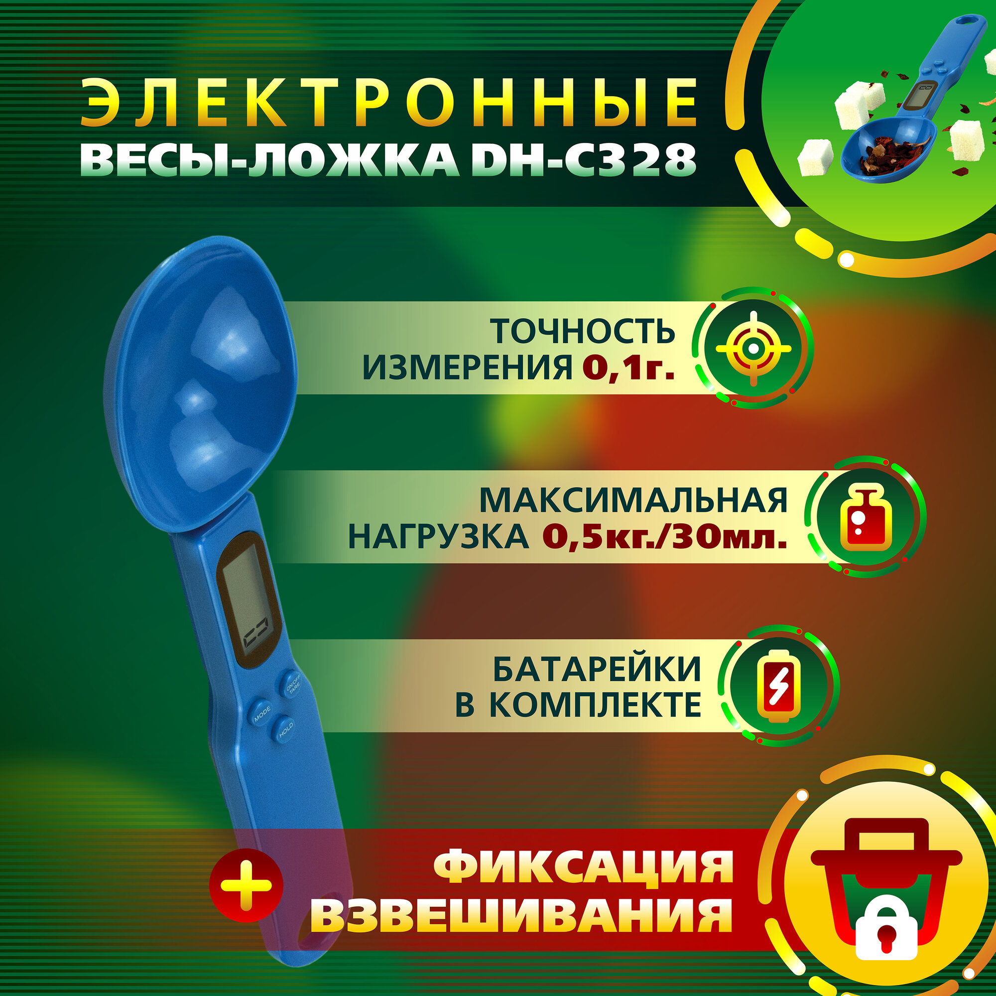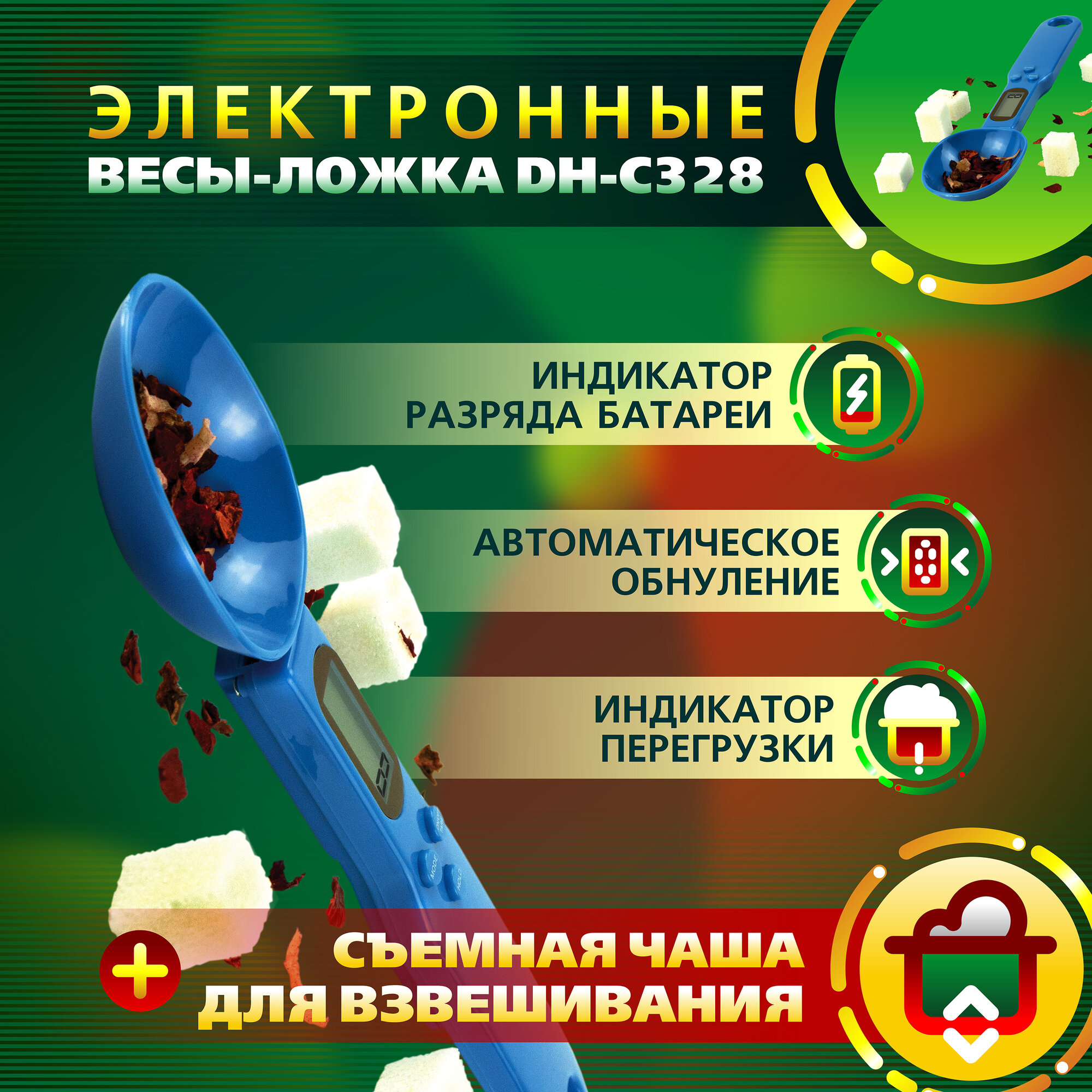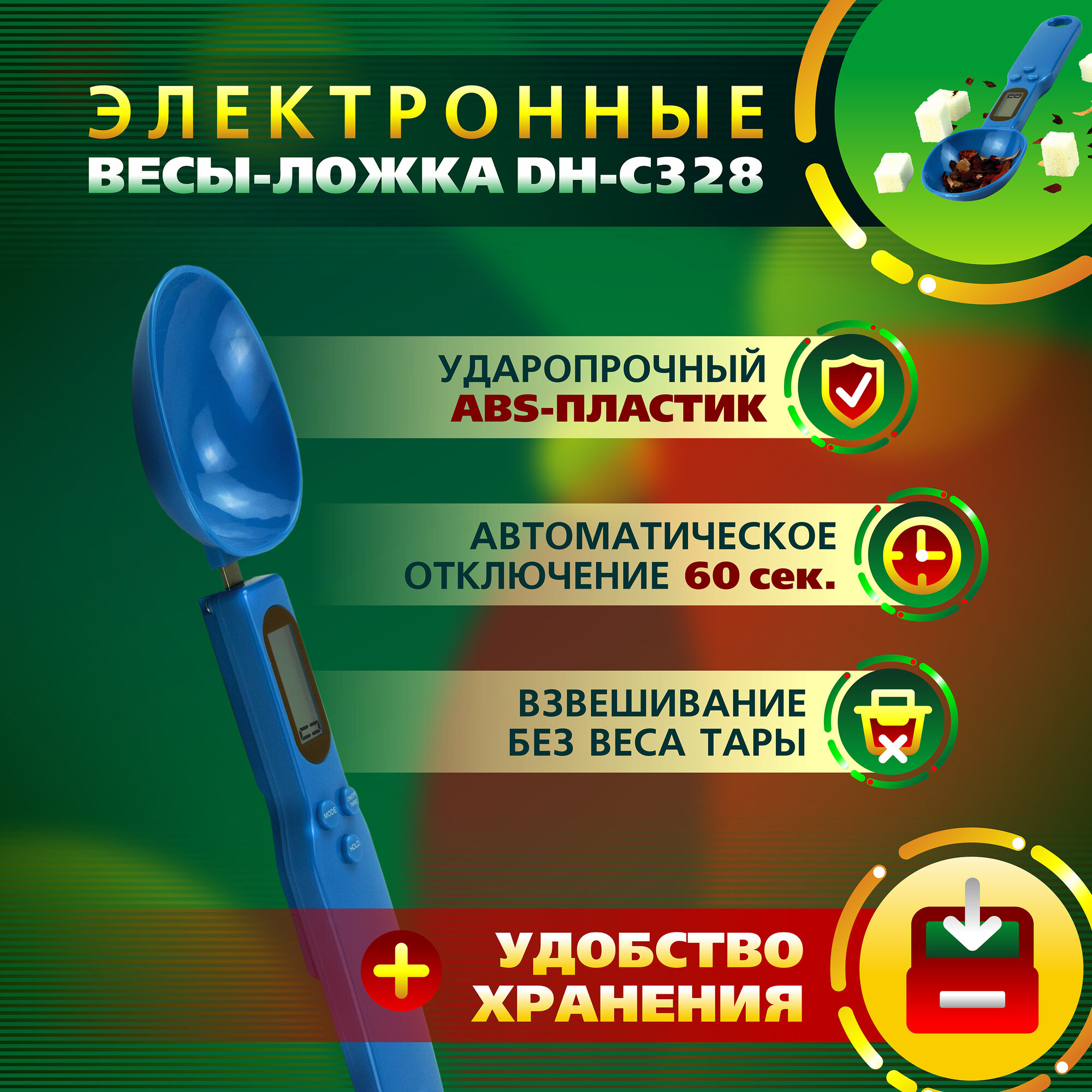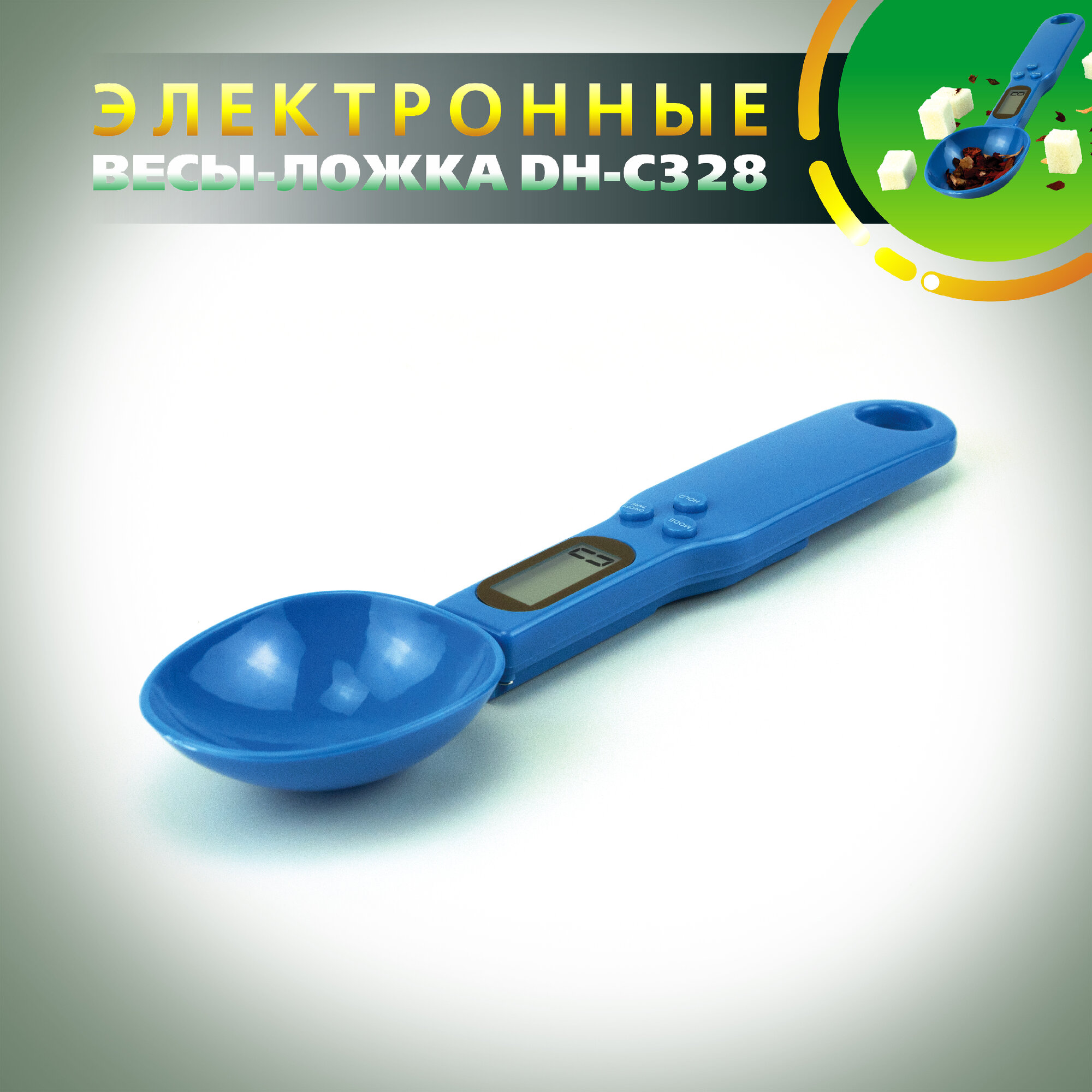 Ложка весы электронные кухонные DH-C328 (синие) для круп, для приправ, для корма, для выпечки интересное: