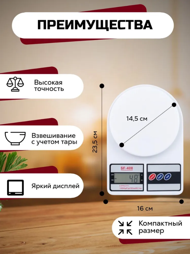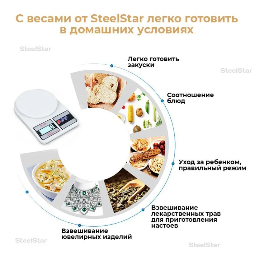 Электронные весы SteelStar Kitchen Scale SF-400 , пластик, 10кг, точность измерения 1г интересное: