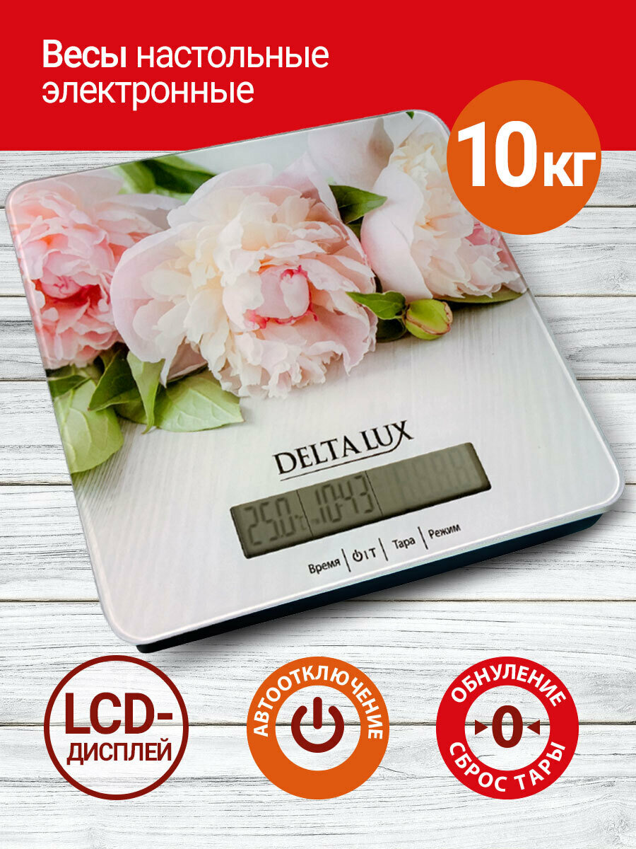 Весы электронные настольные, DELTA LUX DE-006KE, 10 кг, "Цветы" интересное: