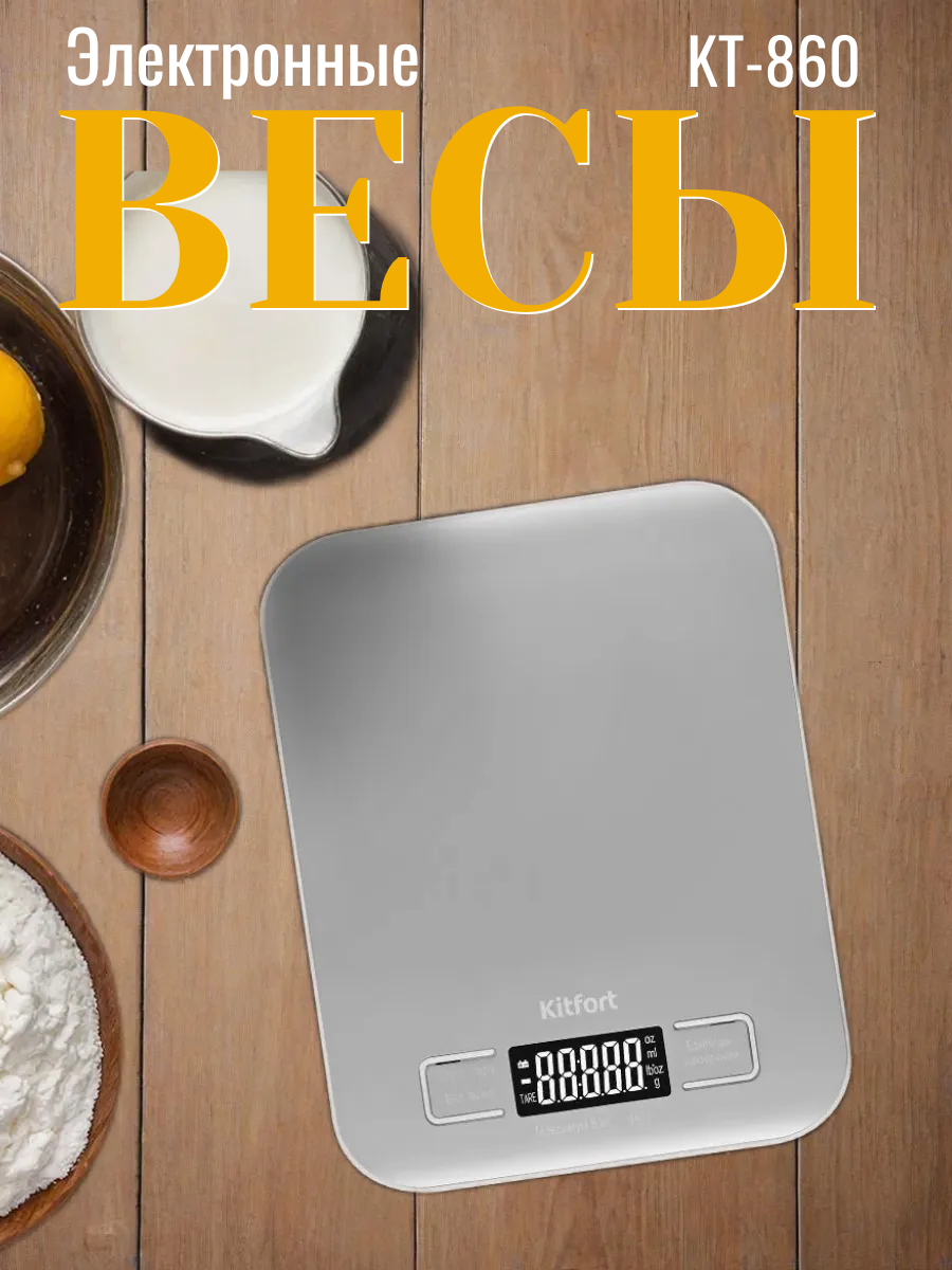 Весы кухонные электронные настольные Kitfort КТ-860, Макс. вес до 5 кг, LCD-дисплей, Серый интересное: