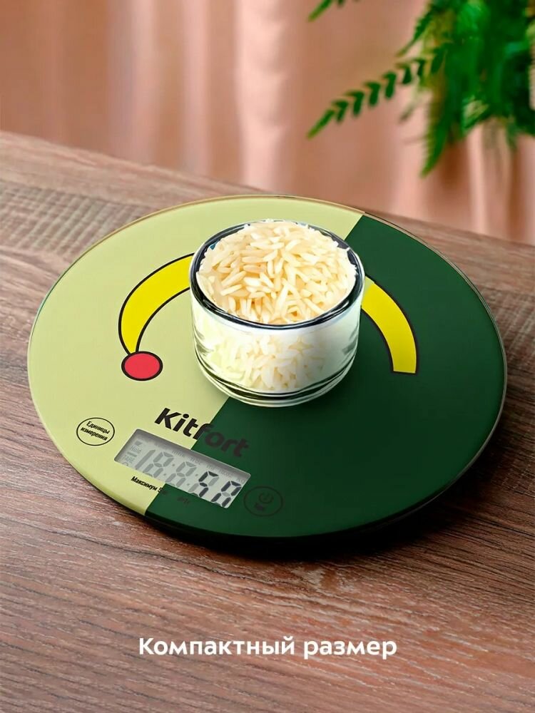 Кухонные весы Kitfort KT-861, с ЖК-дисплеем, точность измерений до 1г, стекло интересное: