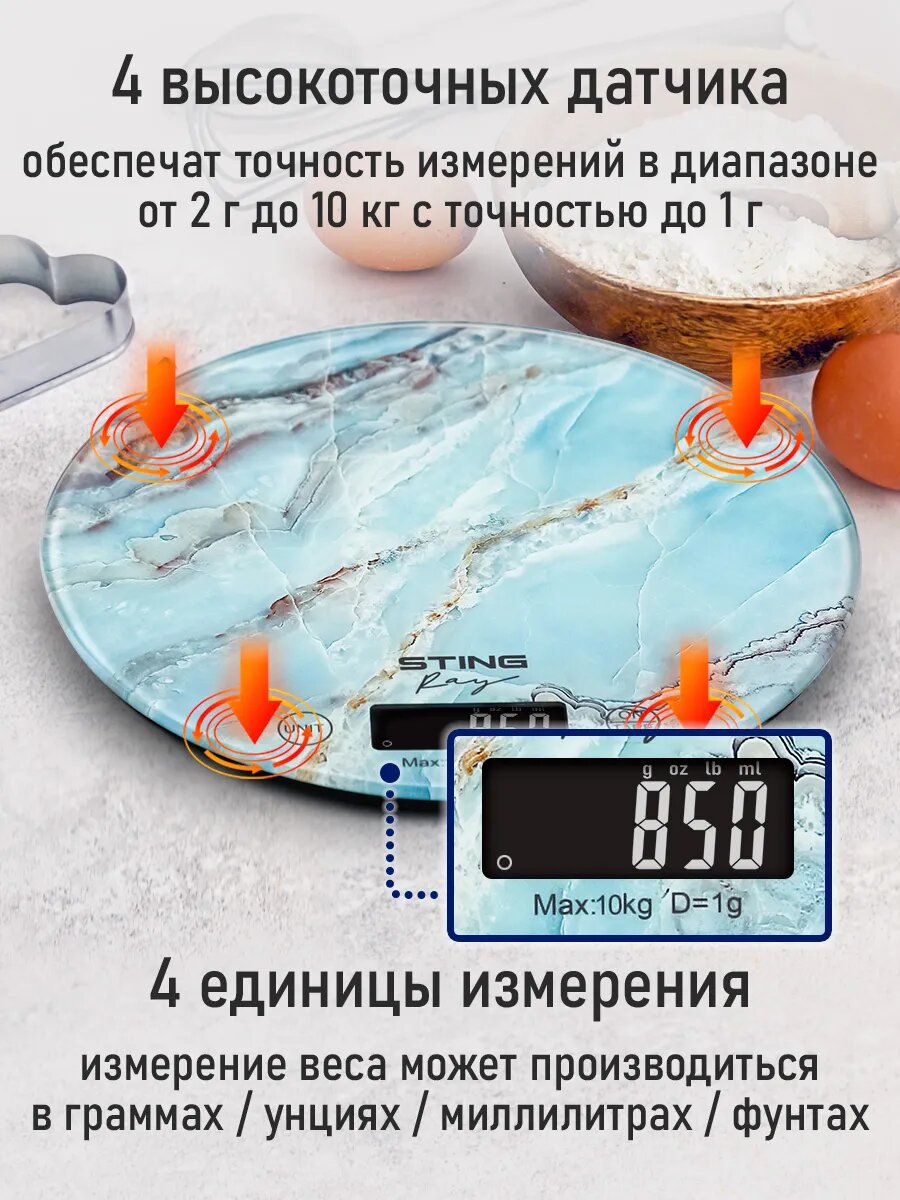 Весы кухонные STINGRAY ST-SC5108A голубой мрамор интересное: