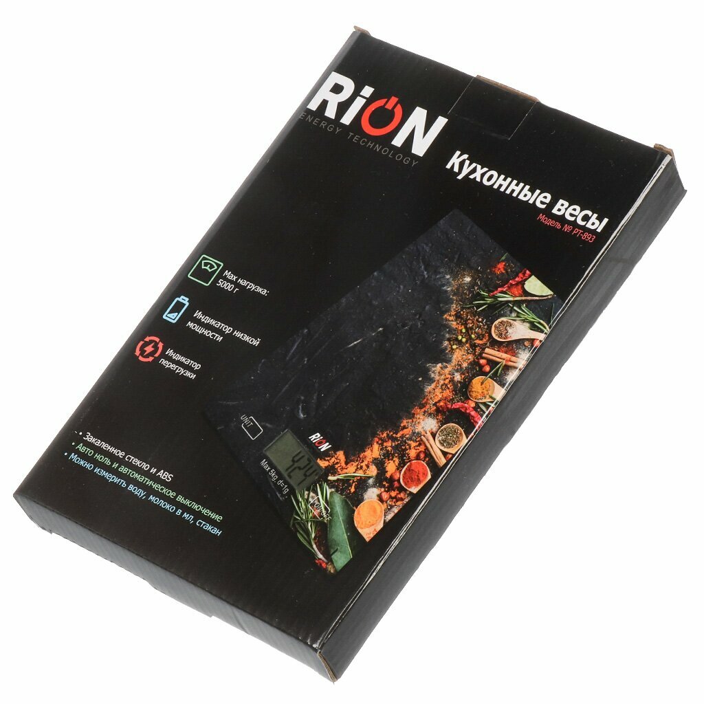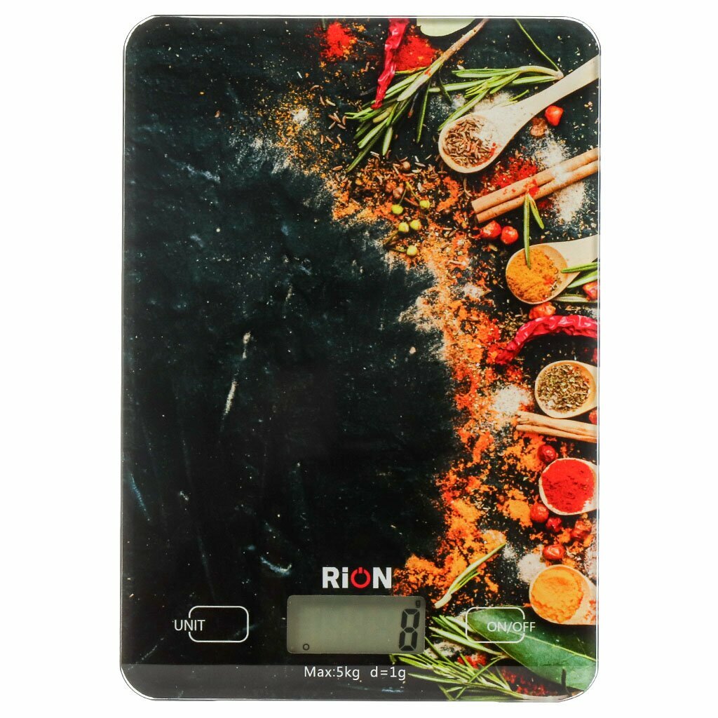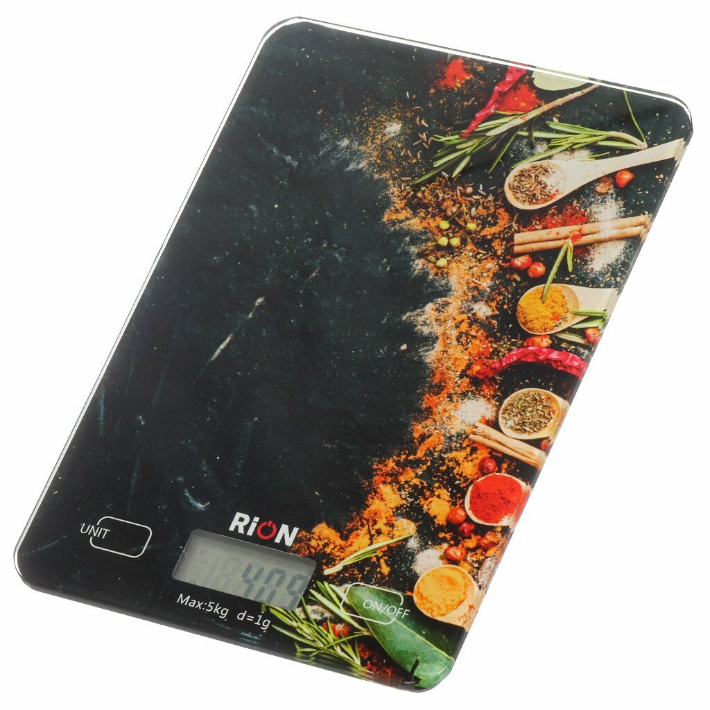 Купить Весы кухонные электронные, стекло, Rion, Специи, точность 1 г, до 5 кг, LCD-дисплей, PT-893