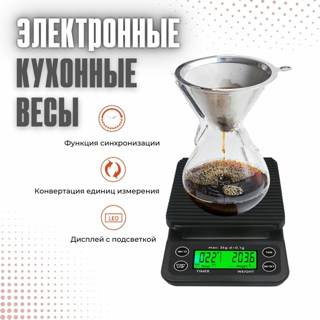 Электронные весы для кофе с таймером 3kg/0.1, черные