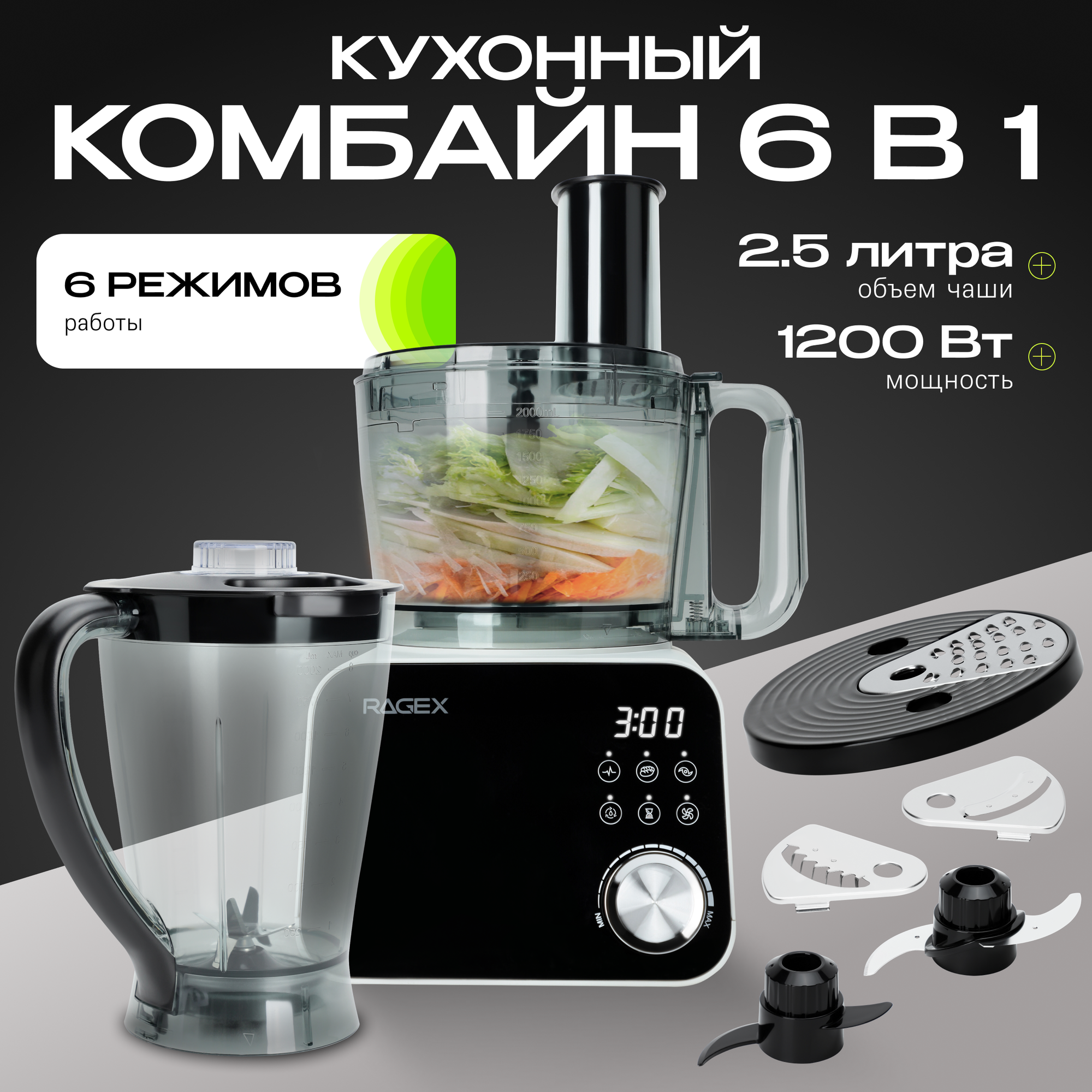 Кухонный комбайн 6 в 1, объем 2.5 литра, 11 скоростей, 1200 Вт, светло-серый интересное:
