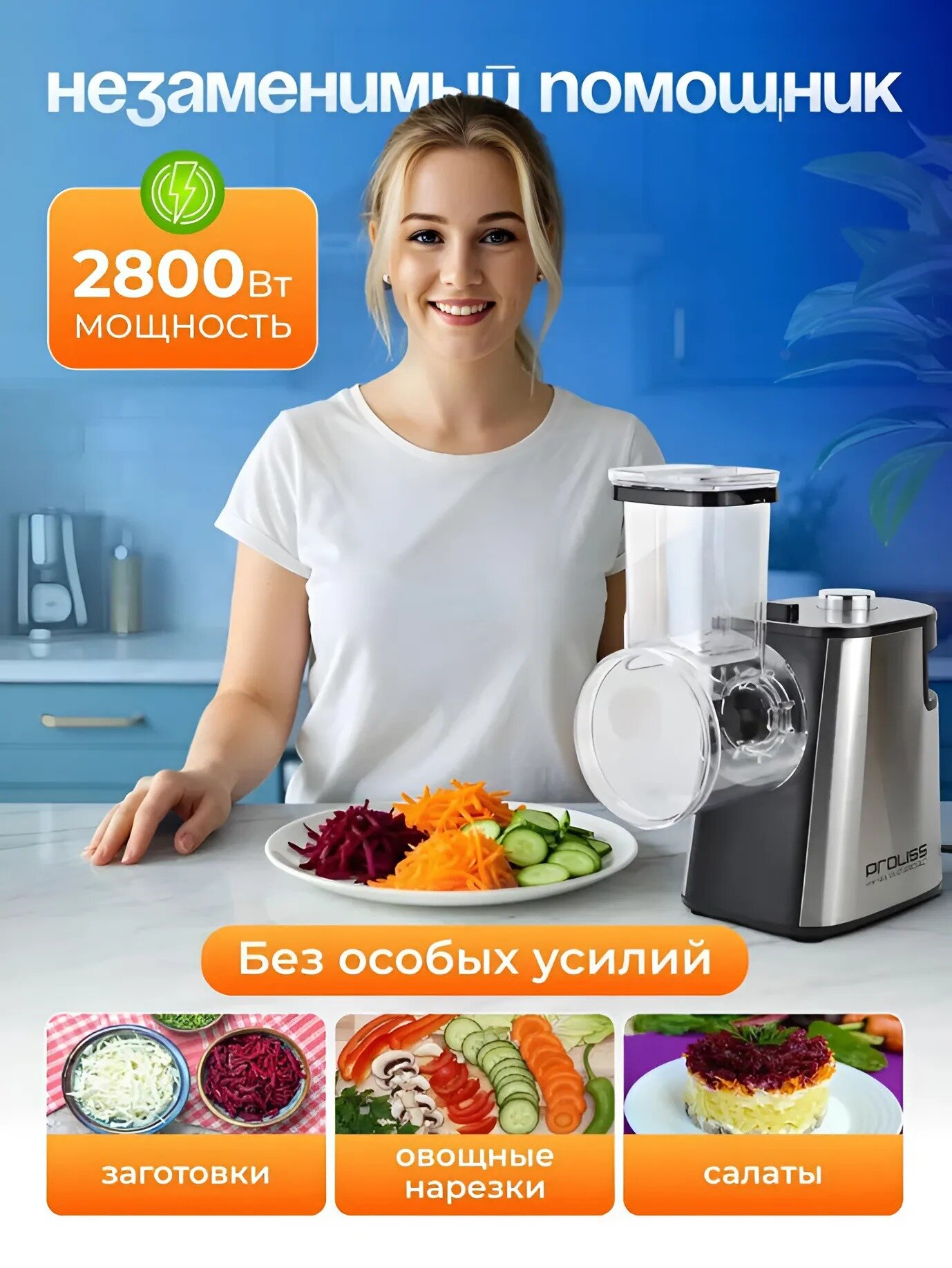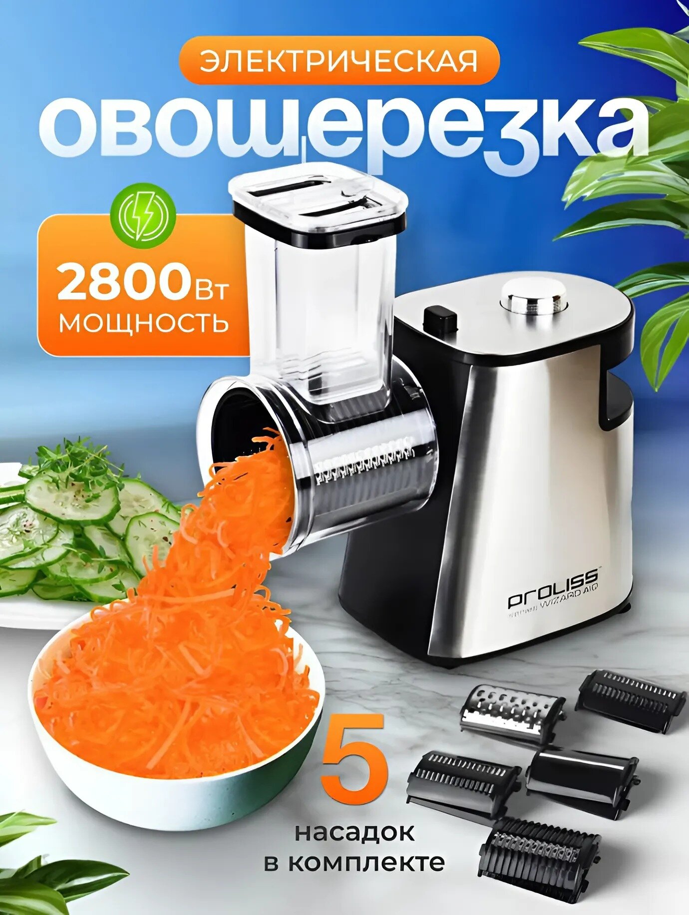 Овощерезка электрическая для овощей и фруктов c насадками многофункциональная Proliss PRO-2813 интересное: