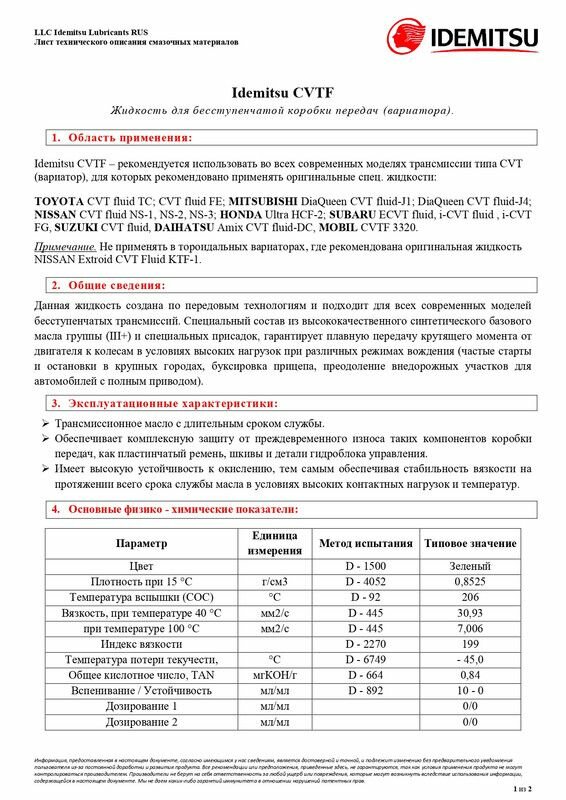 СохранитьМасло трансмиссионное IDEMITSU CVTF, 20 л интересное: