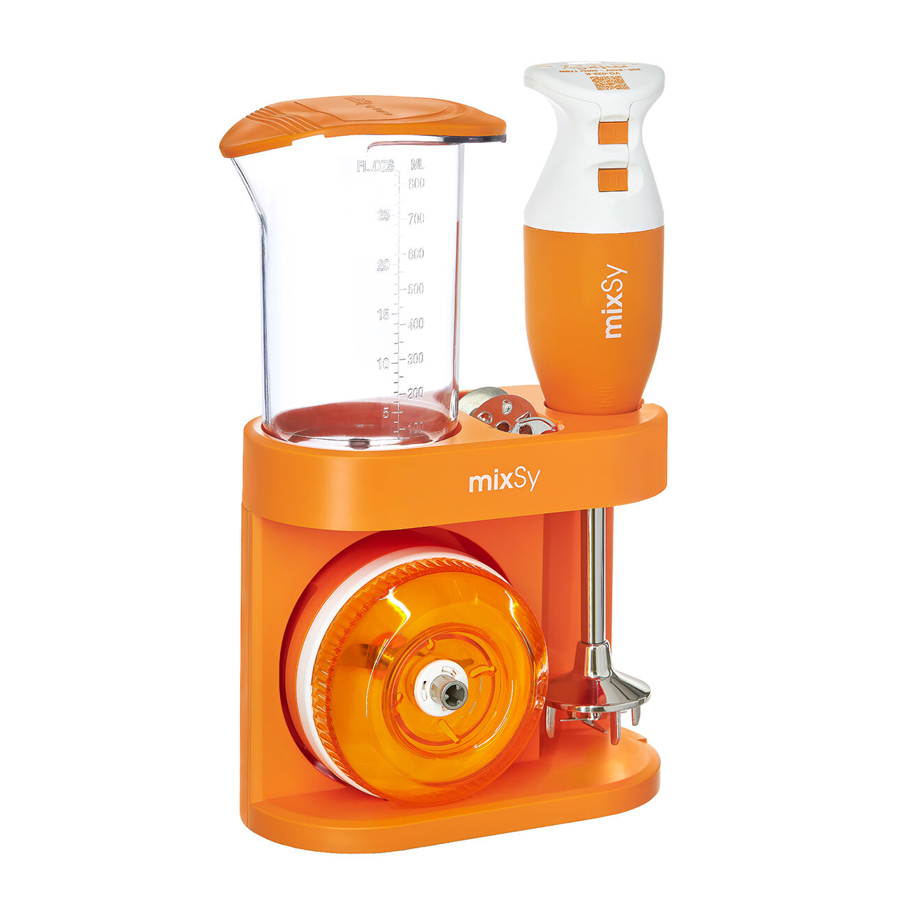 | Подробная комплектация | Погружной блендер с набором насадок; - насадка-миксер, - насадка-взбиватель, - насадка венчик, - нож для мяса; - процессор-мельница, - емкость для смешивания и взбивания объемом 800 мл, - подставка для размещения комплектующих. Гарантийный талон |