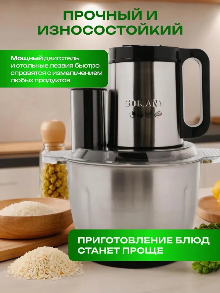 Измельчитель кухонный, Чоппер 6 лезвий, сенсорный, 6 в 1 интересное:
