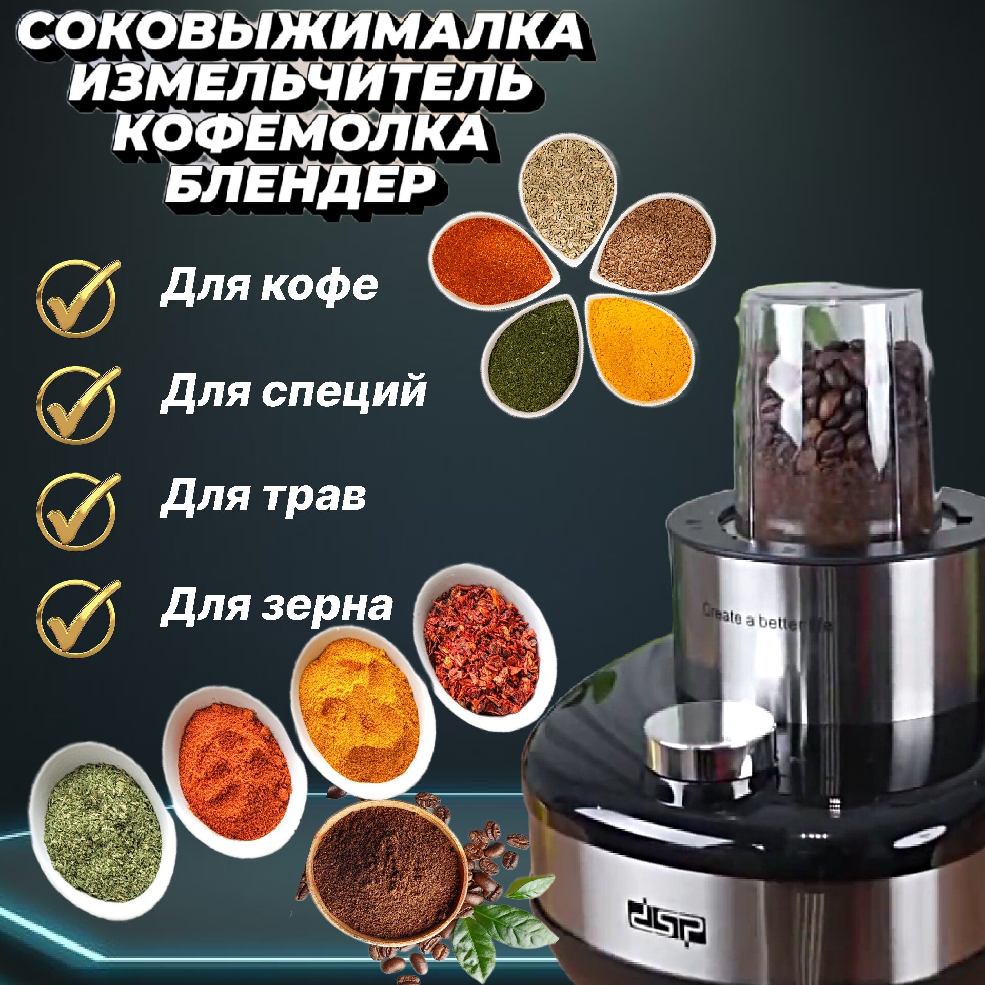Кухонный комбайн 800 Вт с насадками для смузи, коктейлей, кофе и цитрусовых соковыжималкой интересное: