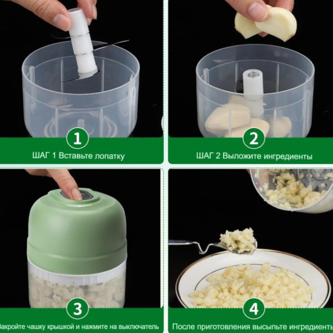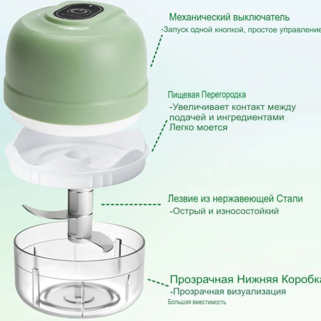 Блендер 3 в 1 / Измельчитель электрический кухонный / Миксер ручной / Объем 250 мл / зеленый интересное: