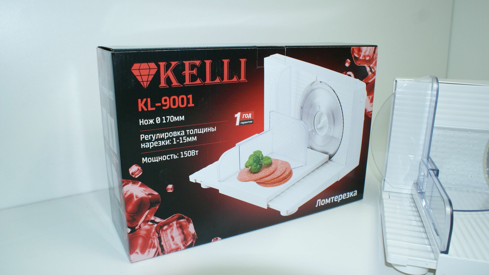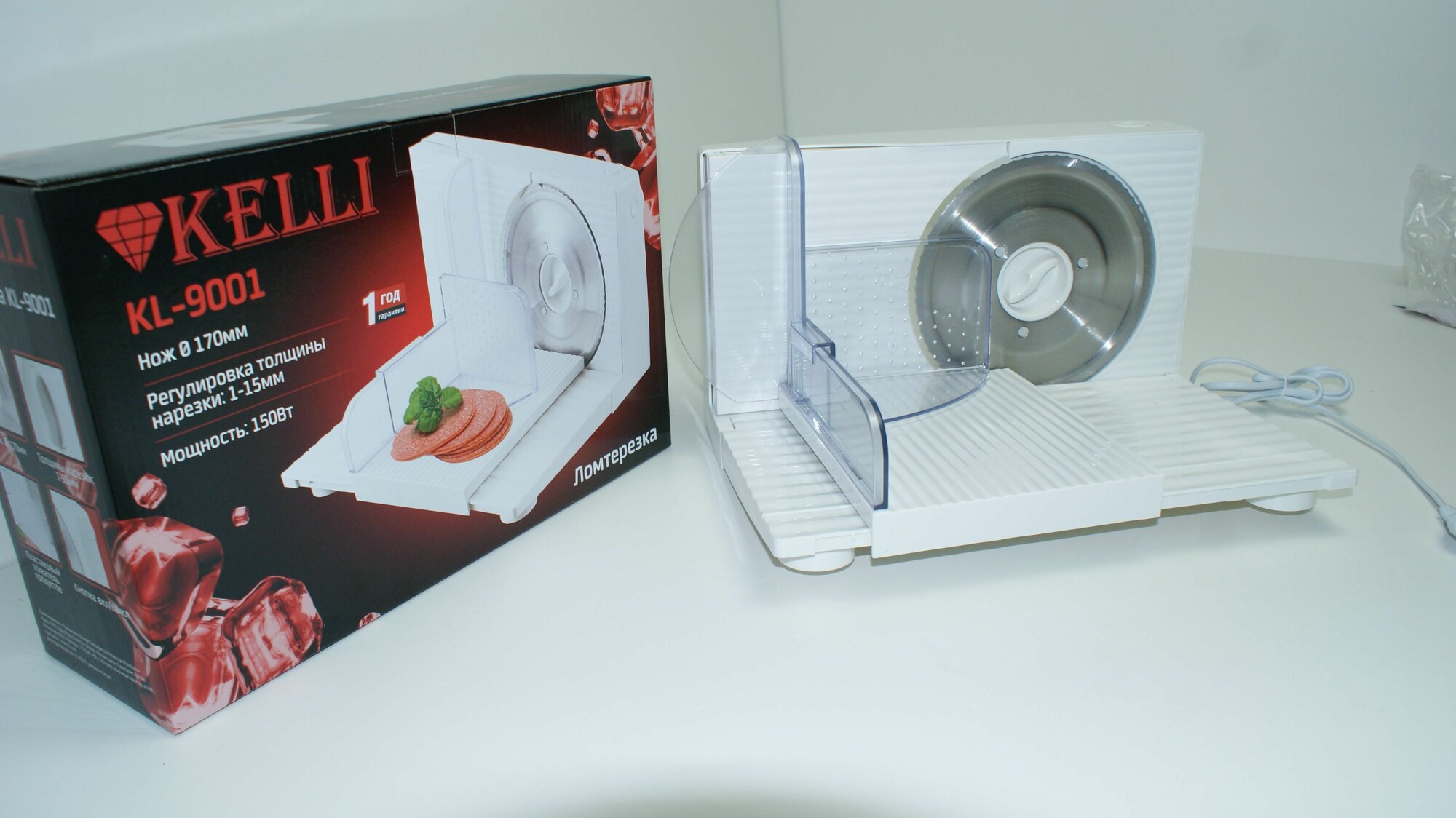 | Комплектация | Ломтерезка Kelli KL-9001 белая; документы. |